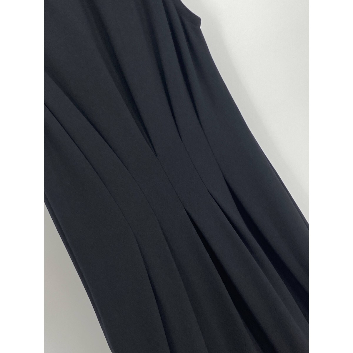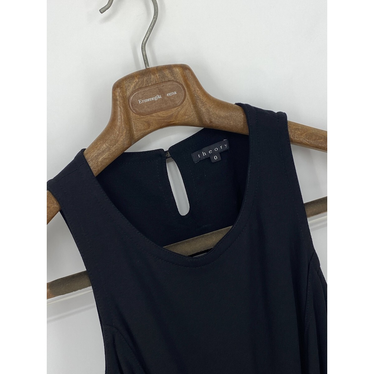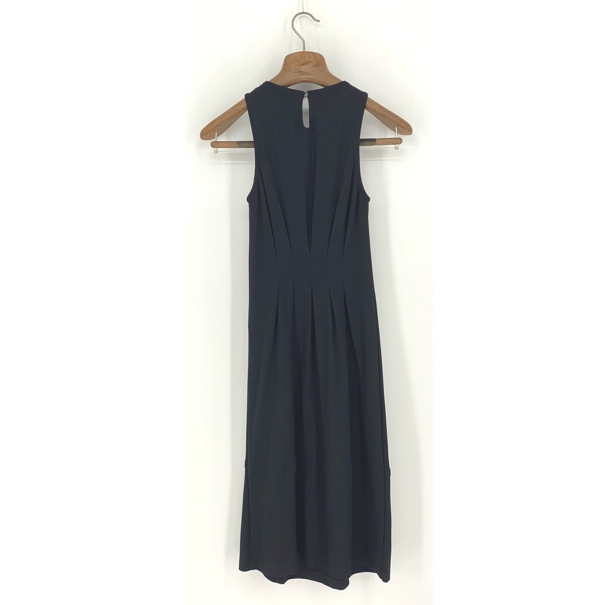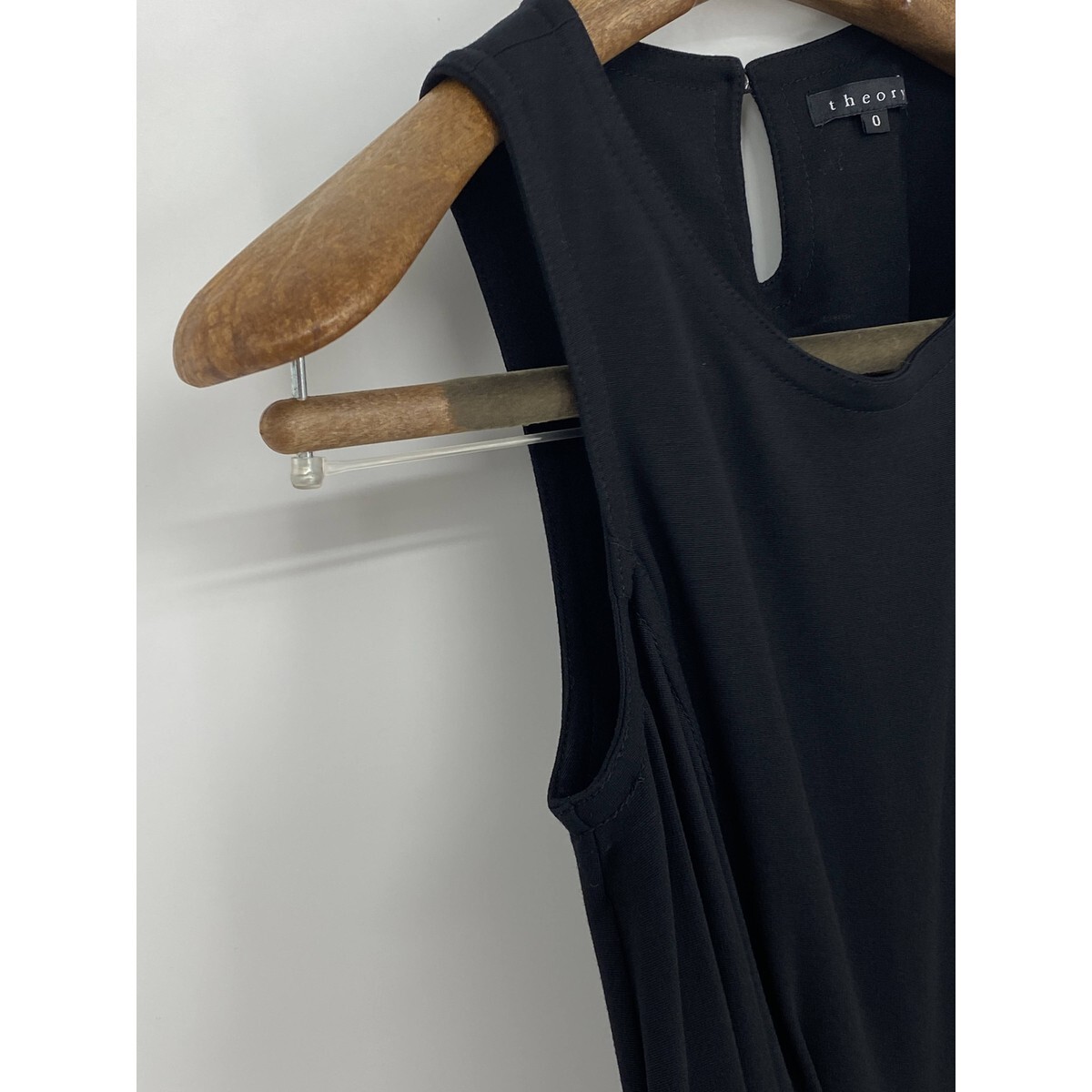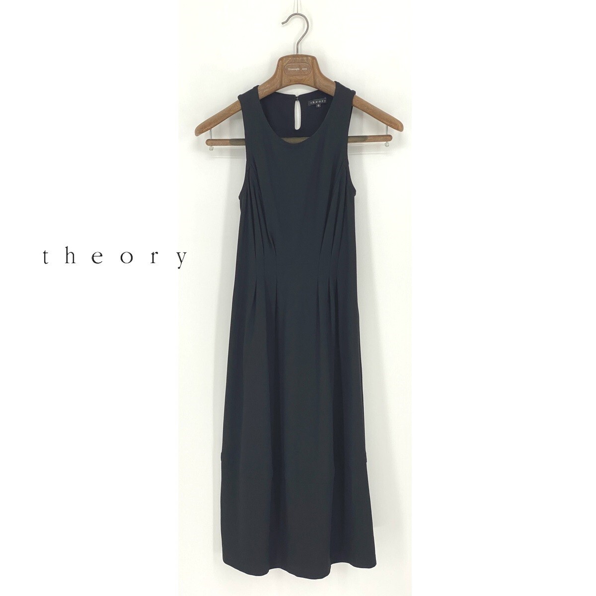 B0531/美品 theory セオリー レーヨン 無地 ストレッチ ノースリーブ プリーツ ギャザー ミモレ丈 膝丈 ワンピース 0 S程 黒 レディース