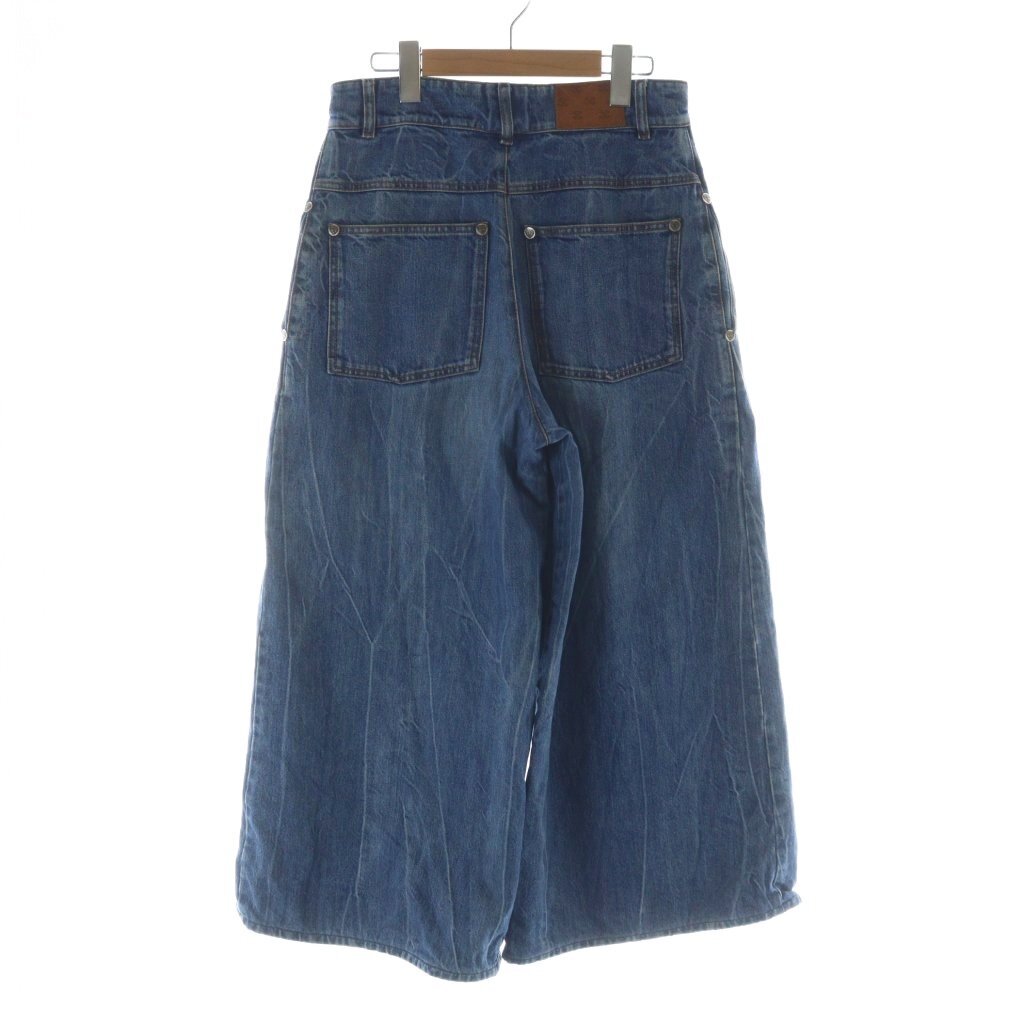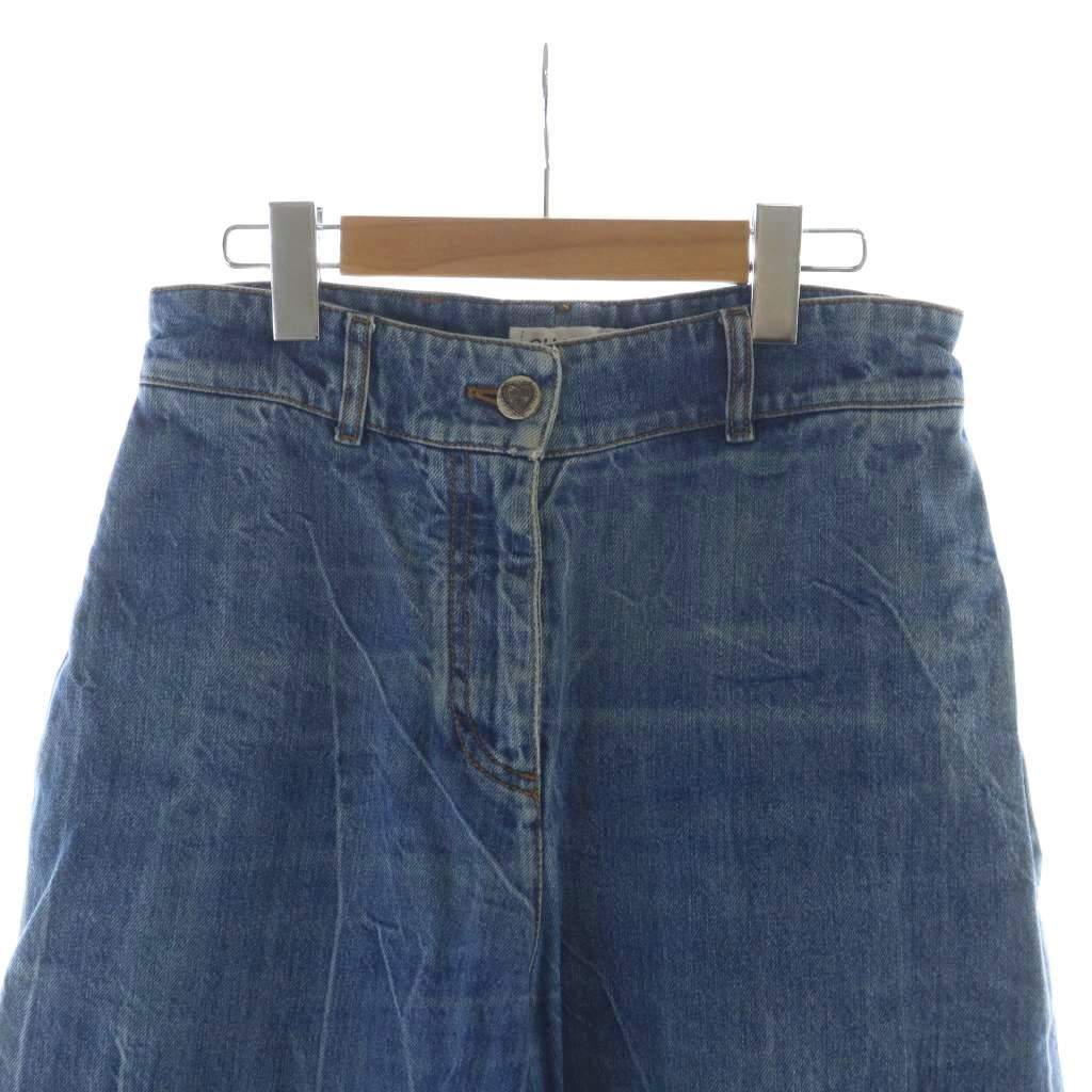 シャネル CHANEL I LOVE CHANEL デニムパンツ ジーンズ ワイド フレア ジップフライ ロゴ バギー ココマーク USED加工 38