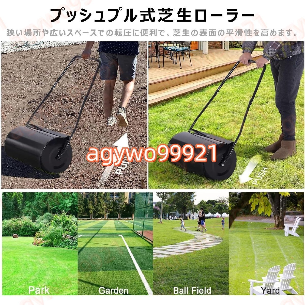 【プッシュ/牽引ポリローンローラー】プッシュ/プルデザインは、ぴったりとフィットするエリアとオープンスペースを回転させるための利便性を提供し、それにより芝生の表面の平坦性を改善します。 播種、水平、固体の土、草、砂、または使用に非常に適しています。
