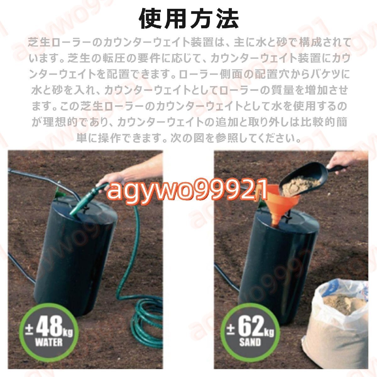 【多目的マニュアルツール】水を充填しても砂であっても、芝生の需要に適したニーズを満たすことができます。 草や水平の泥が草に損傷を与えずに粗い領域で平らになるように、土を静かにコンパクトします。