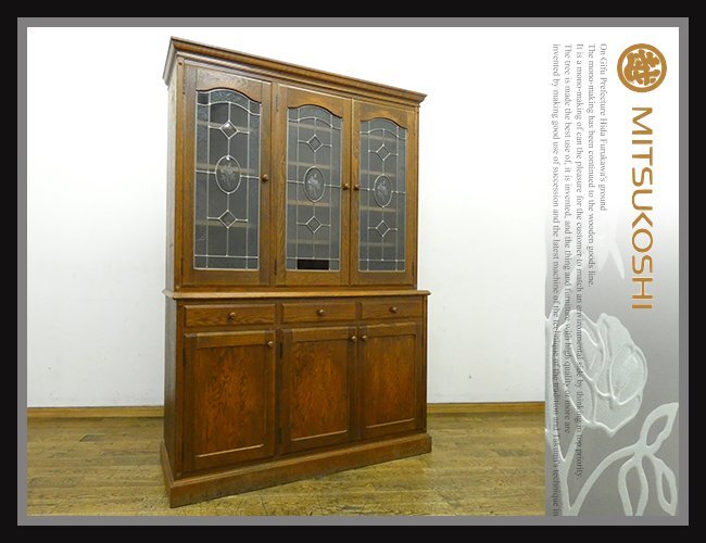 ◆FX940◆三越ブルージュ◆Brugge◆楢 オーク材◆食器棚◆チャイナキャビネット◆ダイニングボード◆ステンドグラス◆英国◆42万