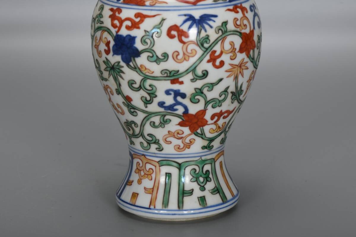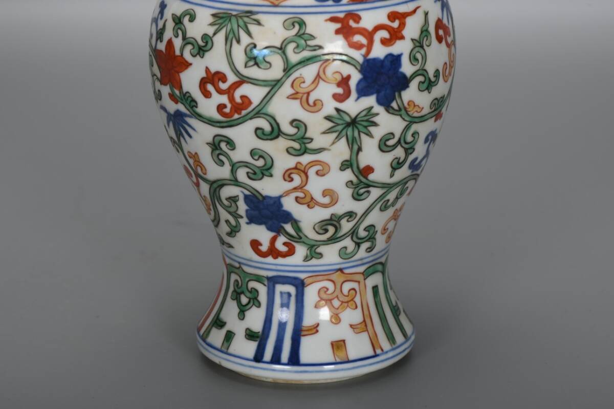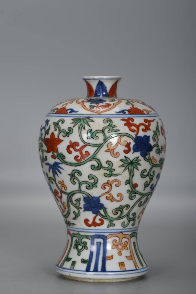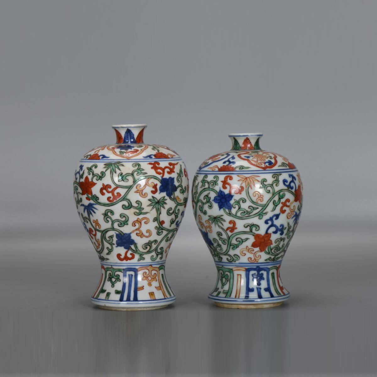 8300QN&9人間国宝 中国骨董 [明正統五彩纏枝蓮梅瓶一対] 中国美術 工芸品 珍品收藏 施釉陶 青花磁 古陶磁器