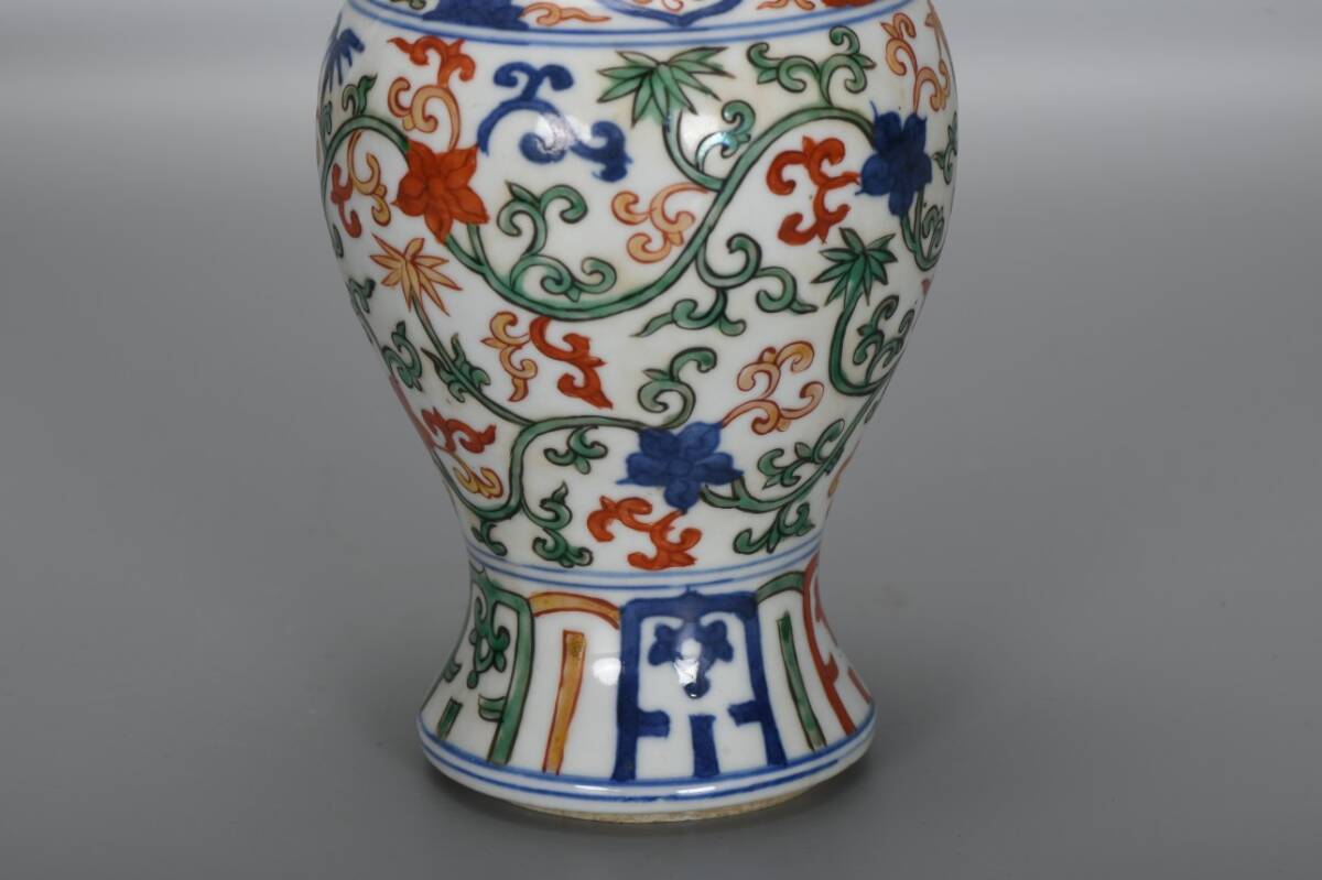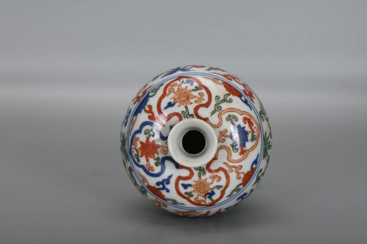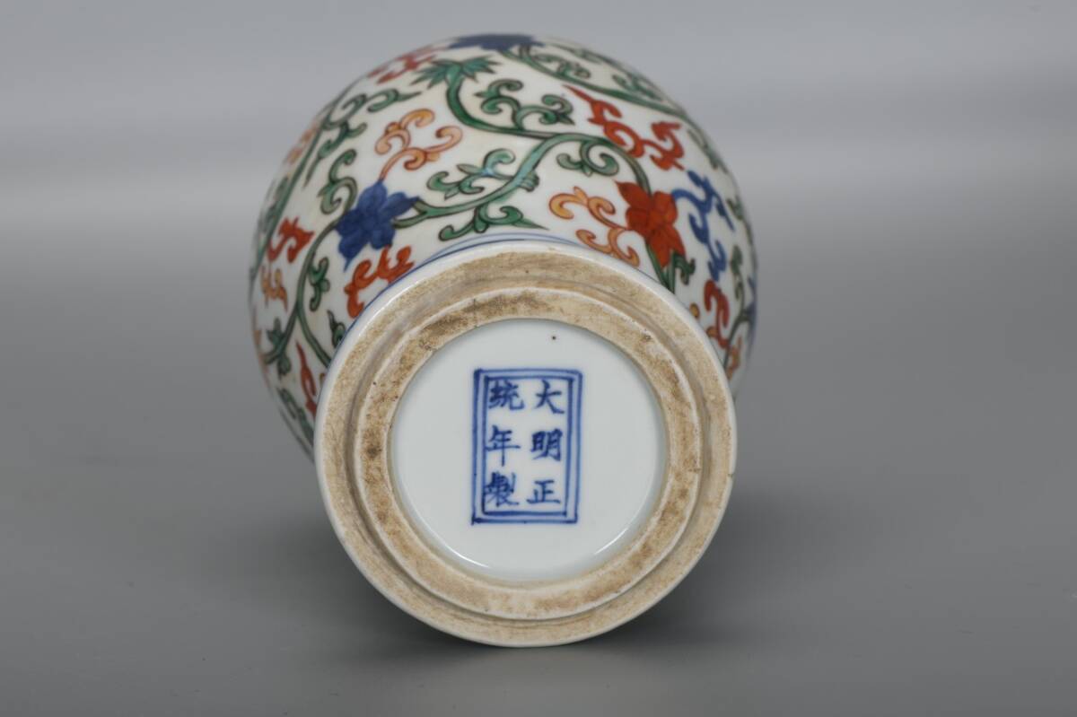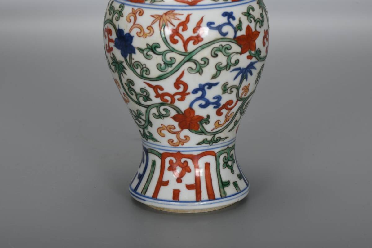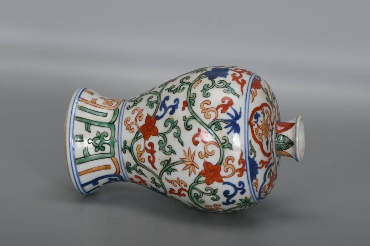 8300QN&9人間国宝 中国骨董 [明正統五彩纏枝蓮梅瓶一対] 中国美術 工芸品 珍品收藏 施釉陶 青花磁 古陶磁器