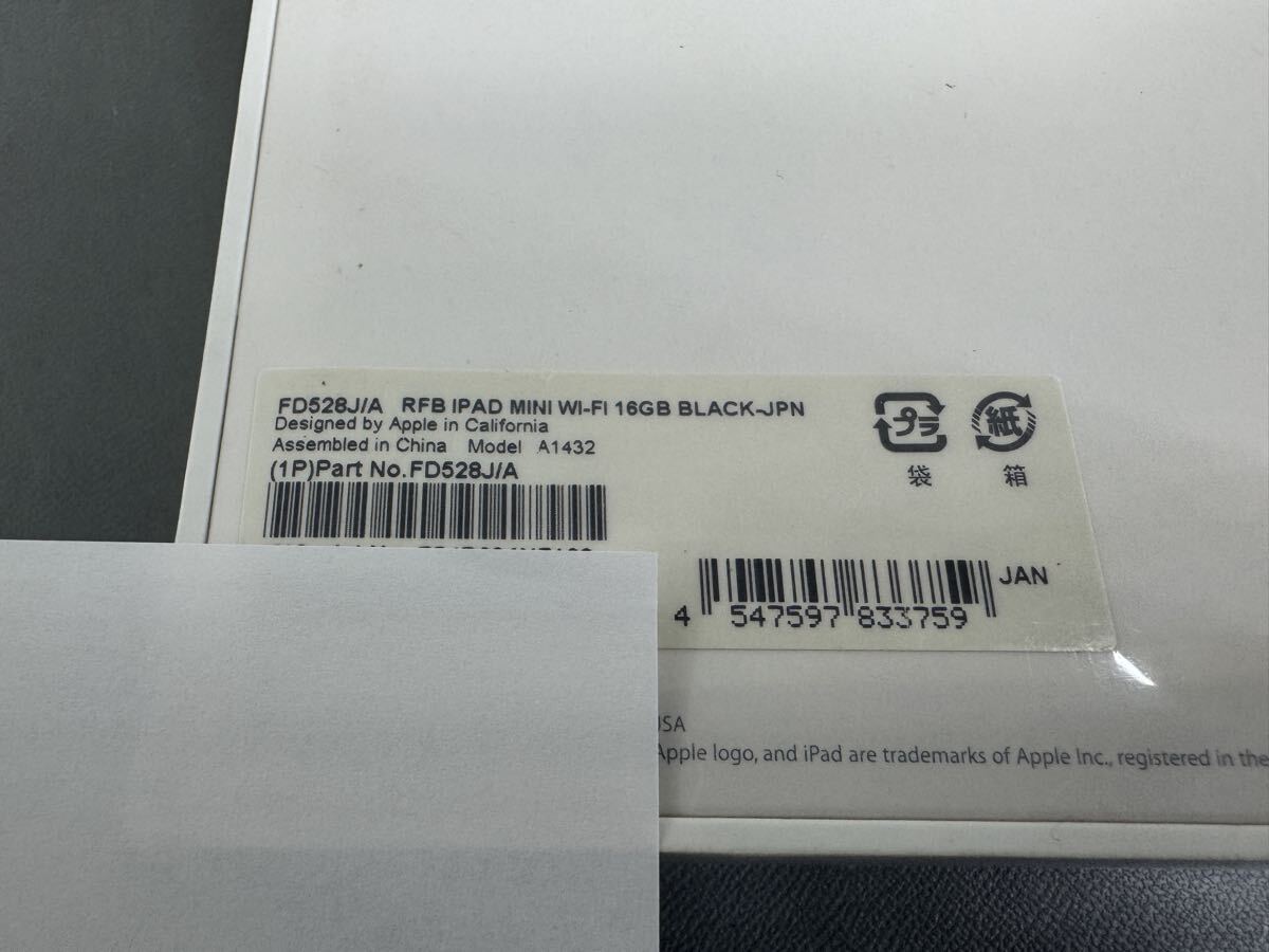 未開封■■ iPad mini A1432 Wi-Fi 16GB ブラック 日本版 第1世代 FD528J/A Apple タブレット アップルの新品交換品です!