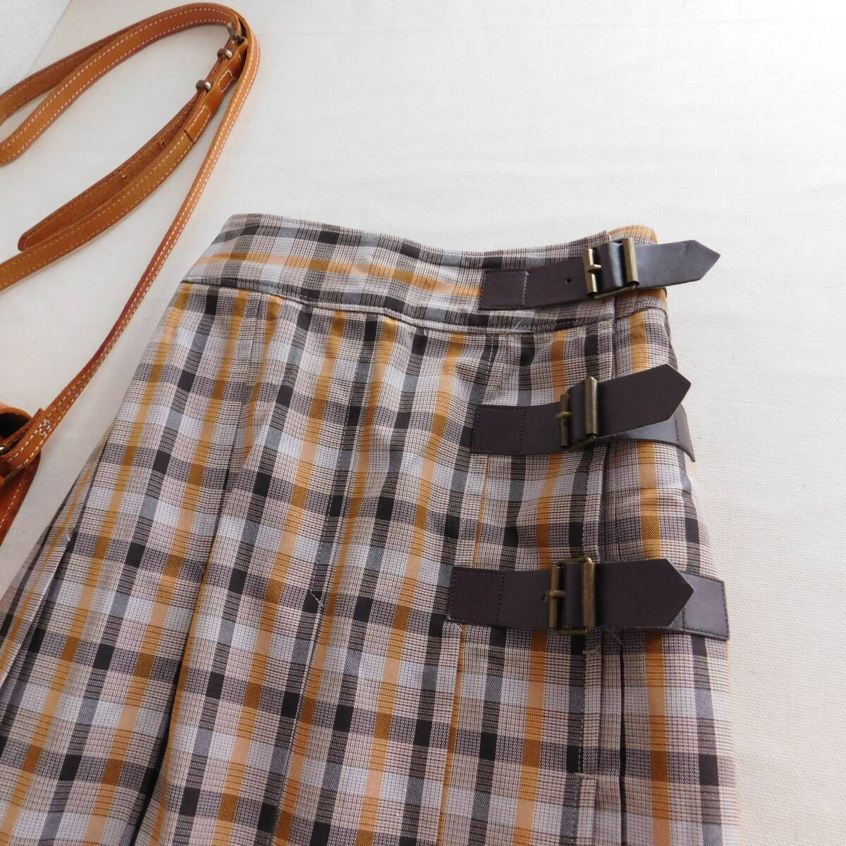 チェック柄のプリーツスカートがかわいいです。