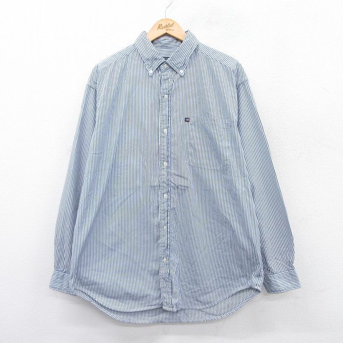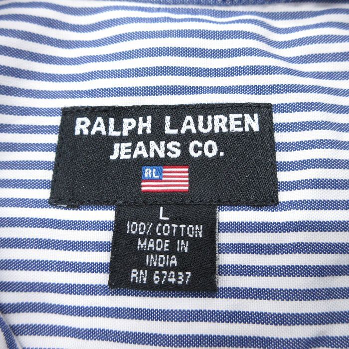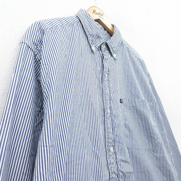 【商品名】 XL★古着 ラルフローレン ポロジーンズ 長袖 ブランド シャツ メンズ 00年代 00s 大きいサイズ ロング丈 コットン ボタンダウン 紺他 ストライプ