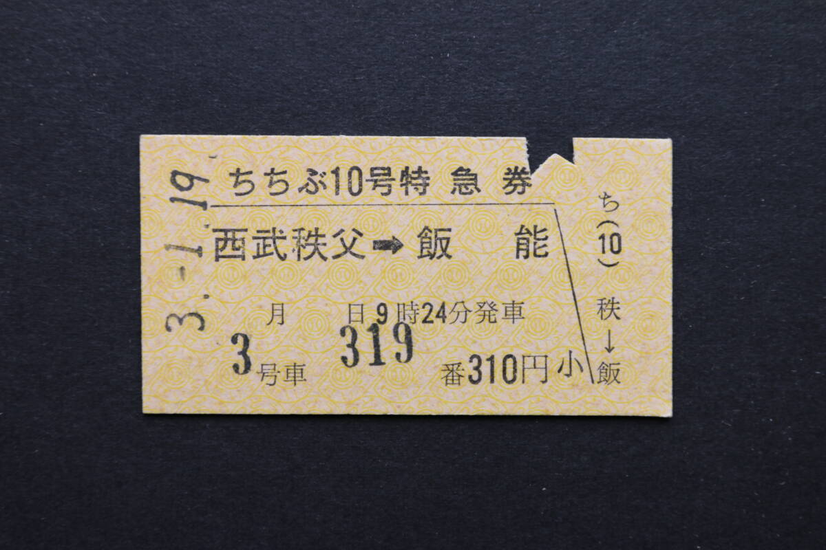 西武鉄道特急券 ちちぶ10号 西武秩父→飯能 310円