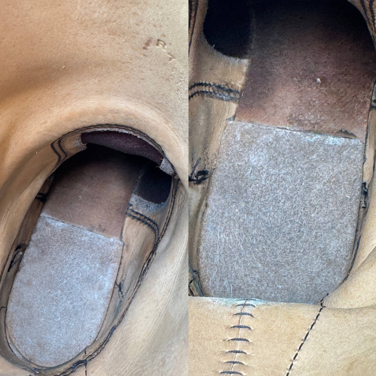 到着後すぐに気持ち良く履いていただけるよう、専用クリーナーで丸洗いしております。