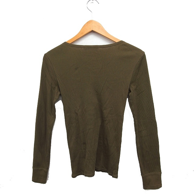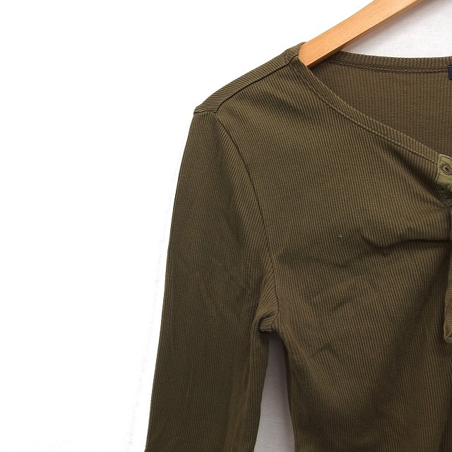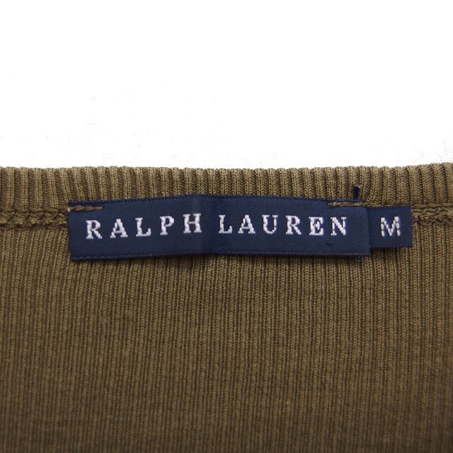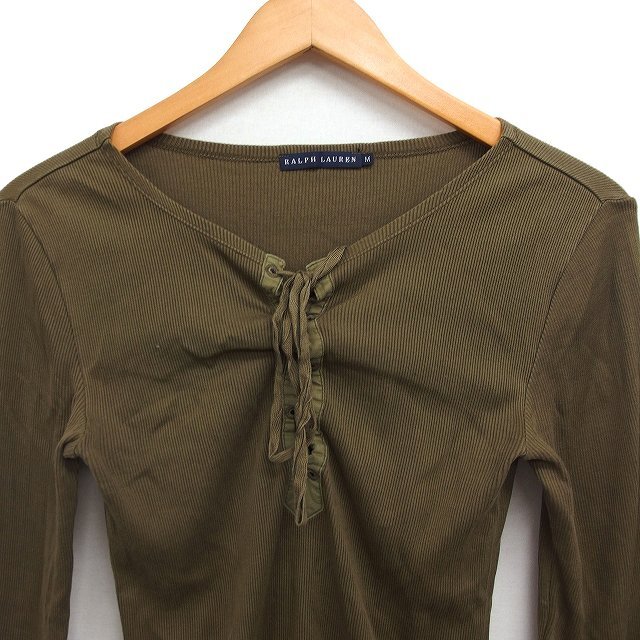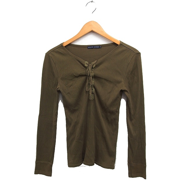 ラルフローレン RALPH LAUREN 国内正規品 リブ Tシャツ カットソー レースアップネック 長袖 無地 コットン 綿 M オリーブ /FT レディース