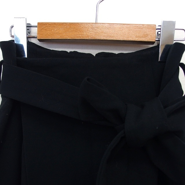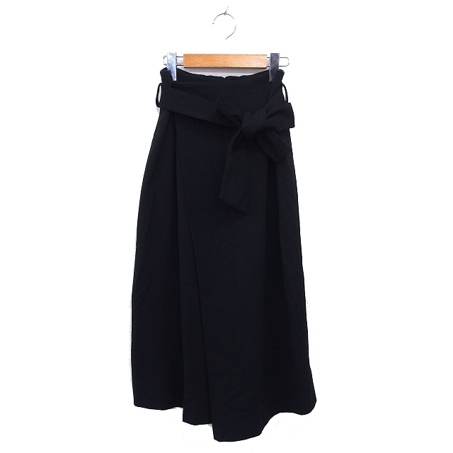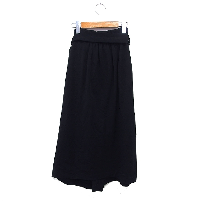 ローズバッド ROSE BUD フレア スカート ロング リボン タック サイドジップ 無地 S 黒 ブラック /NT18 レディース