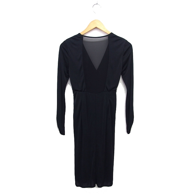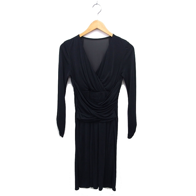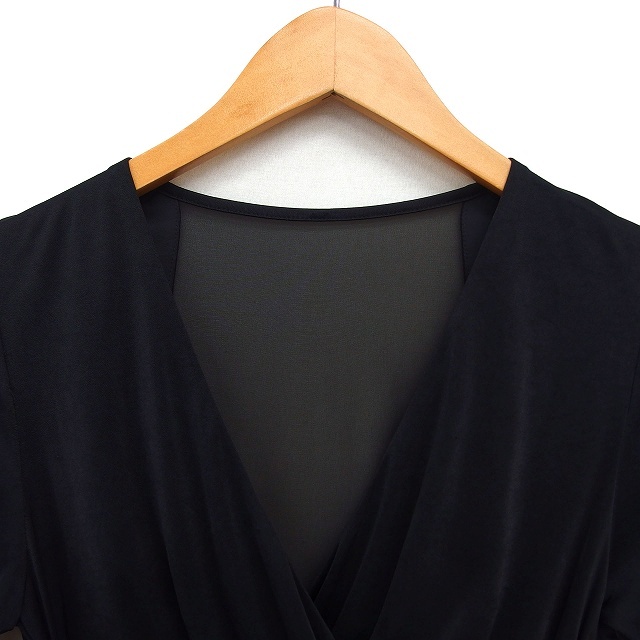 ノーベスパジオ NOVESPAZIO カシュクール ワンピース フレア ひざ丈 ギャザー シアー 切替 長袖 38 黒 ブラック /NT28 レディース