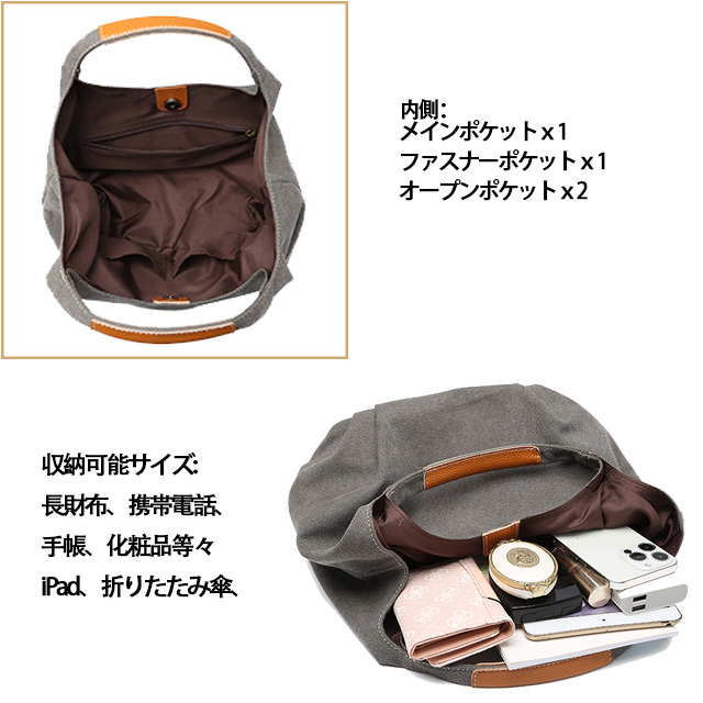 【本革×6号帆布】春夏限定 トートバッグ レディース 肩がけ 大容量 グレー おしゃれ 人気 ハンドメイド ST098