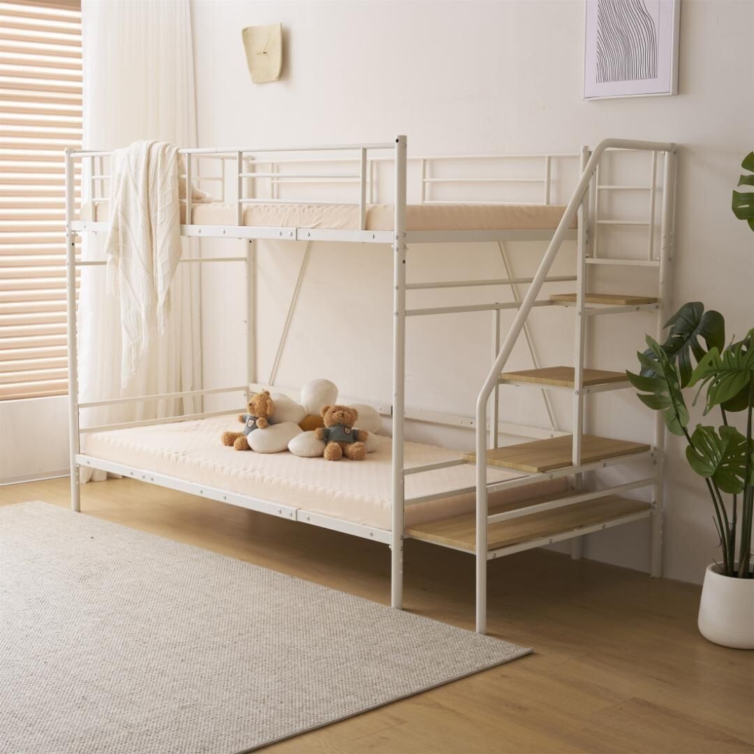 【安全に昇り降りできる階段タイプ】足元の安定している階段タイプは昇り降りしやすく、一段一段安定感があり、大人でもお子様でも安全にご利用いただけます。レイアウトに合わせて階段を左右どちらかを選んで取り付けることができます。