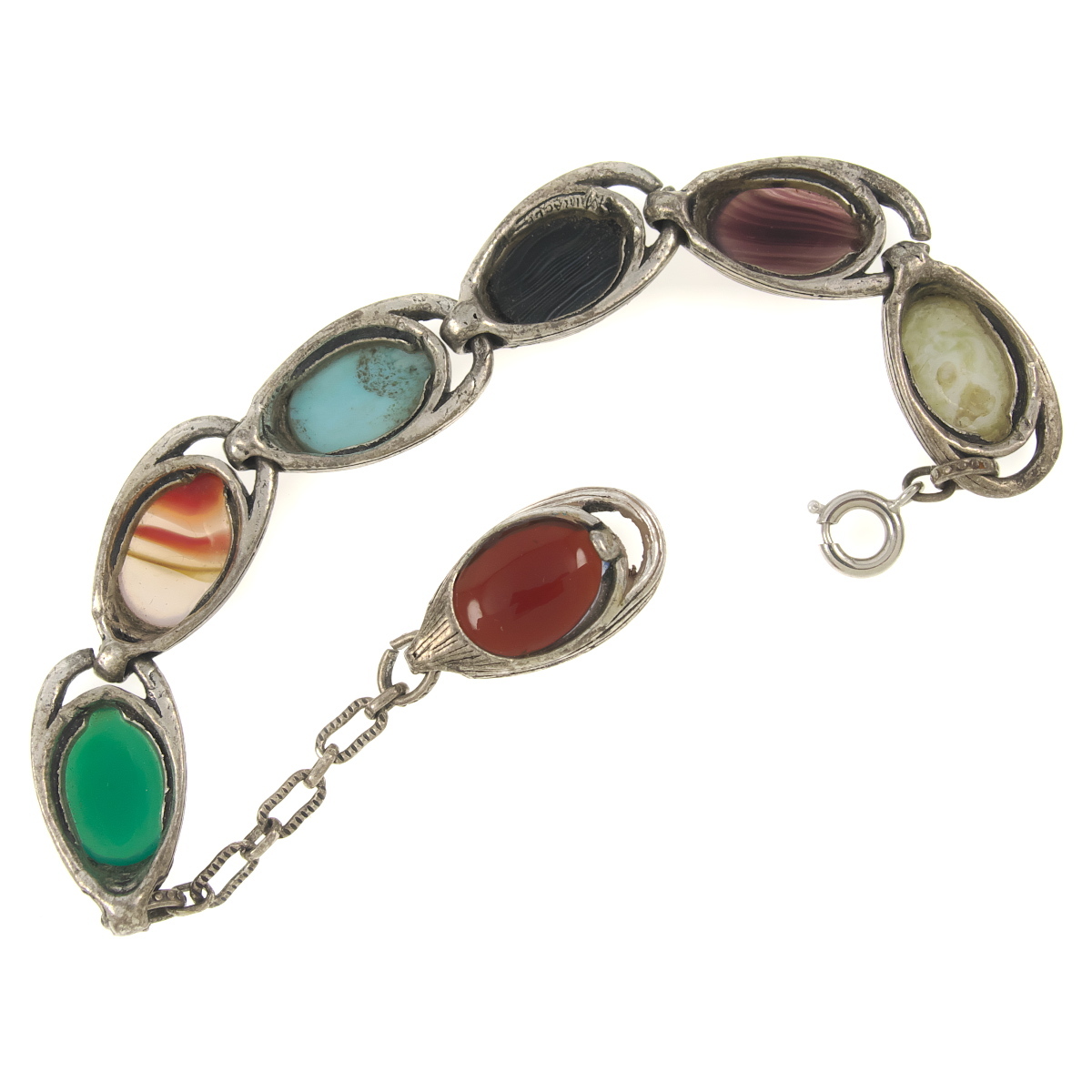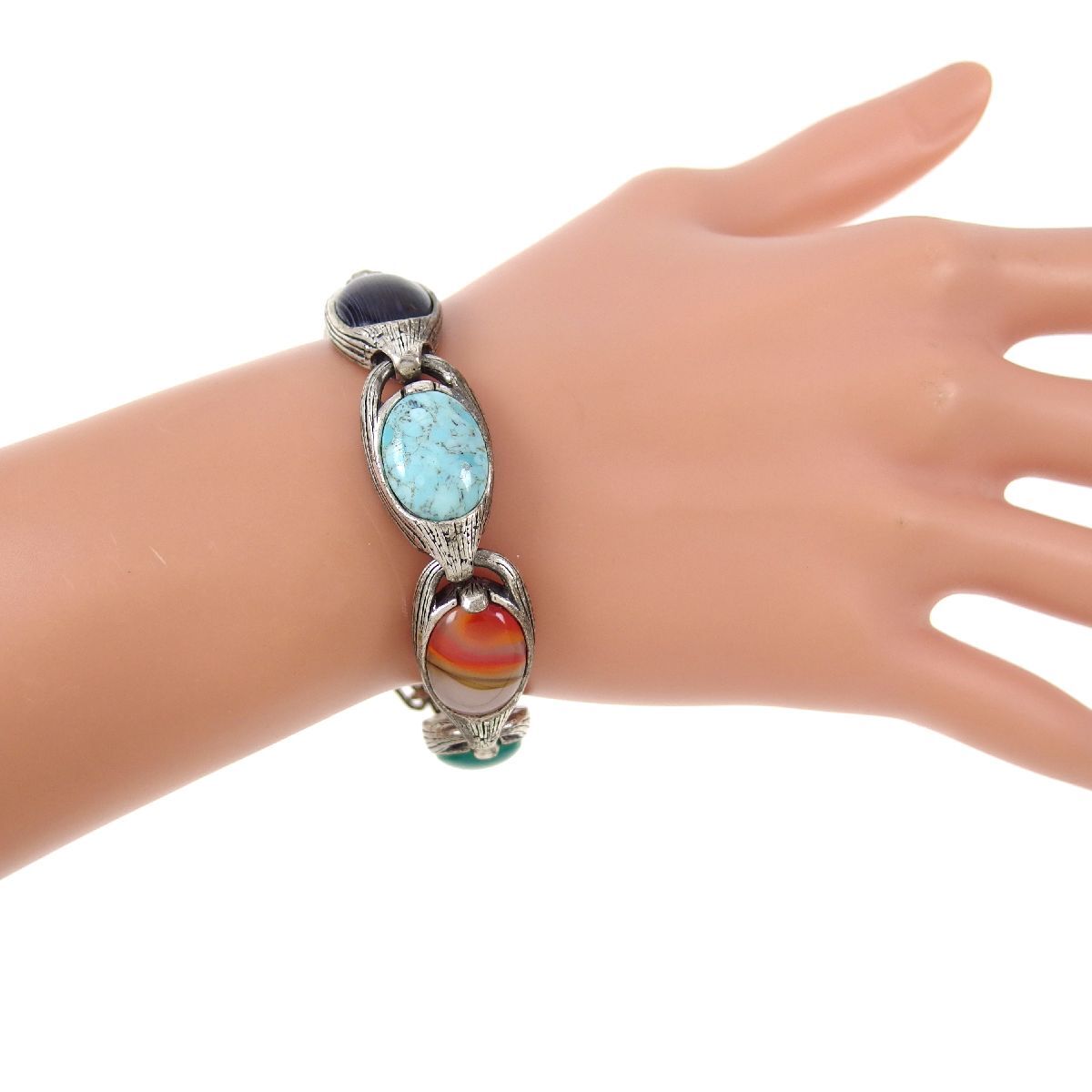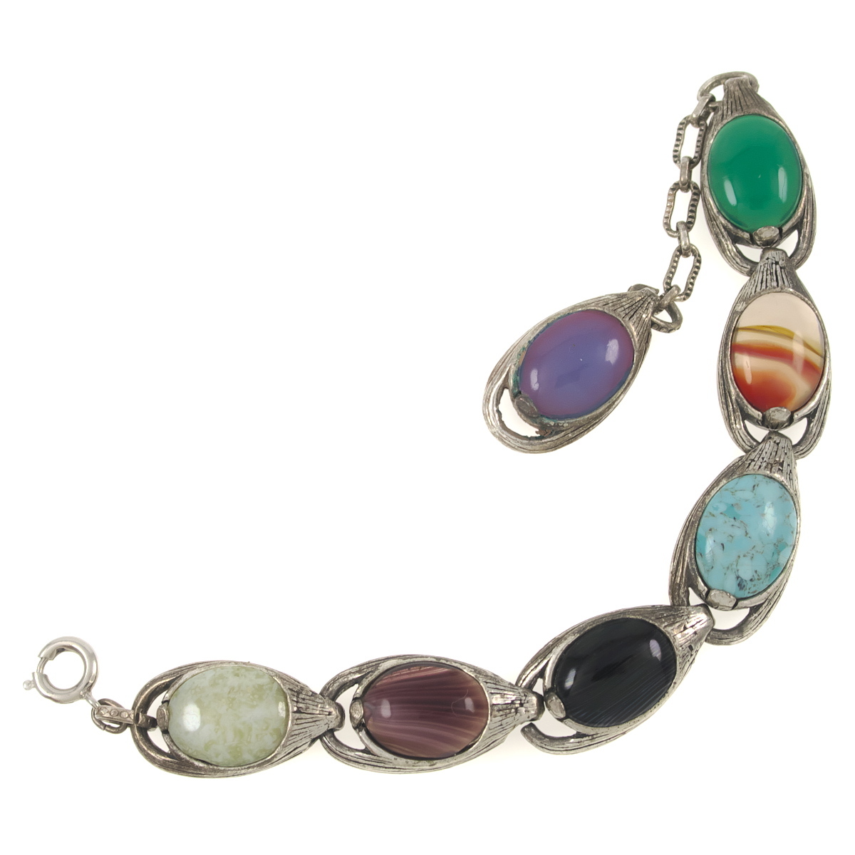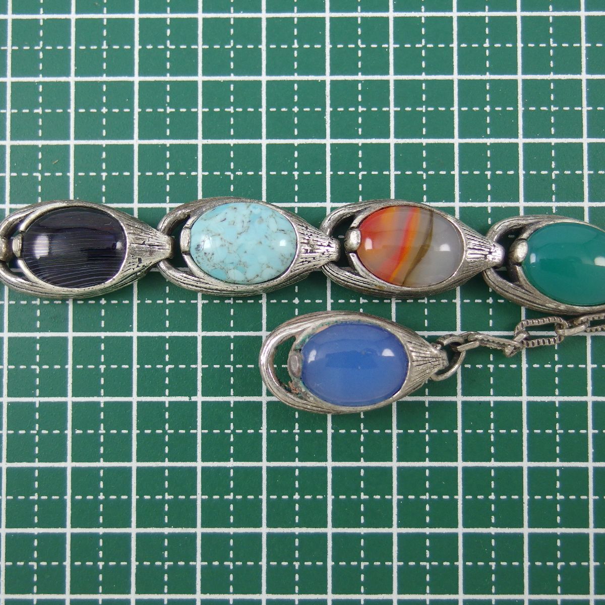UK4052◆【MIRACLE】◆ マルチカラーカボションストーン 色石 ケルト ミラクル 英国 ◆ ヴィンテージブレスレット ◆