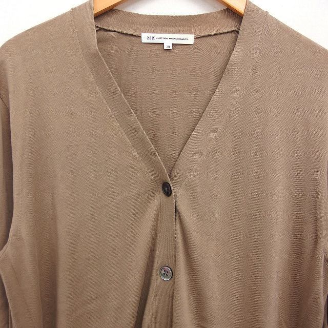 23区 オンワード樫山 コットン ニット Vネック カーディガン 無地 38 ライトブラウン 薄茶 /FT13 レディース