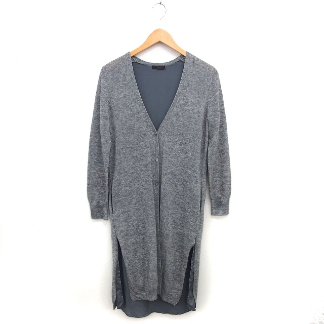 ケーティー キヨコ タカセ K.T KIYOKO TAKASE ロング カーディガン ニット ウール混 リブ ハイゲージ 長袖 9 グレー /NT31 レディース