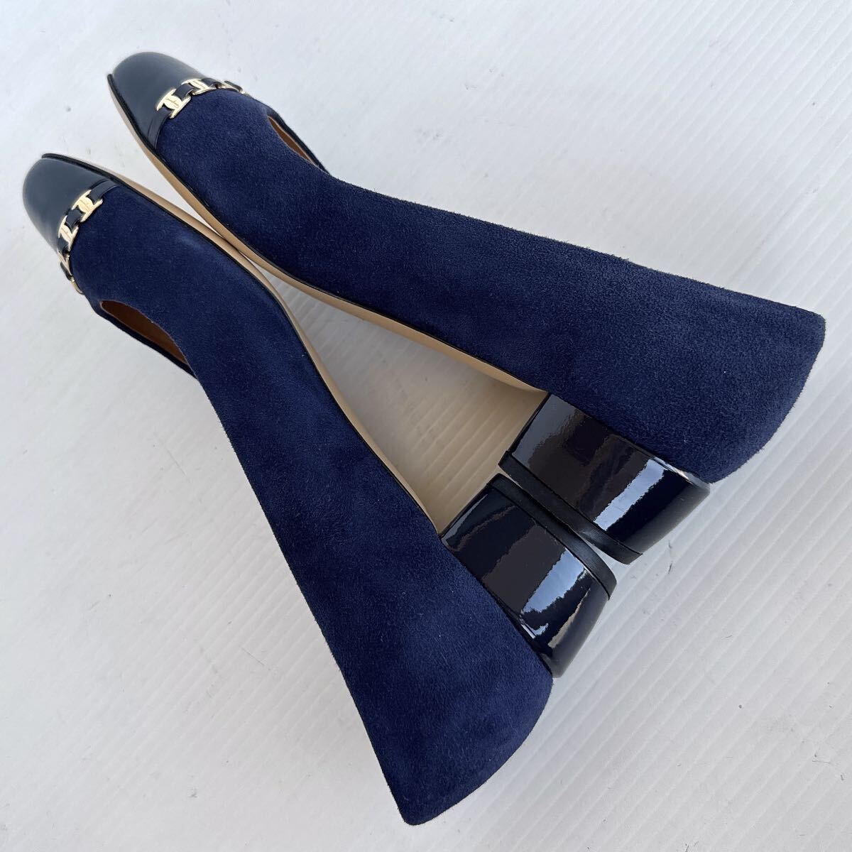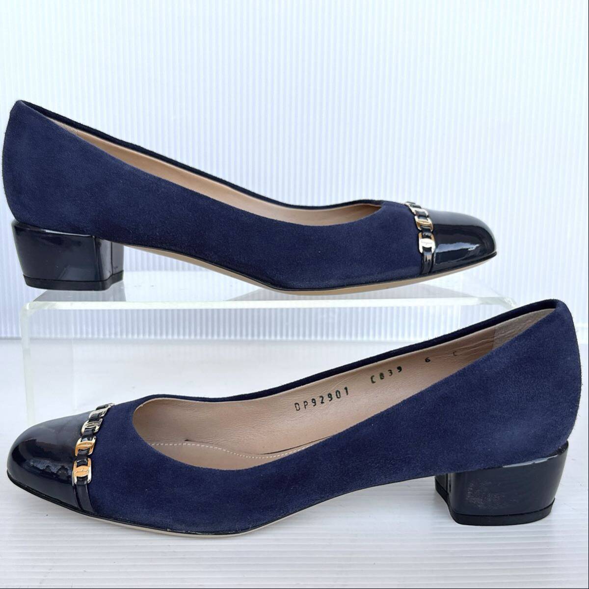 スエードとエナメルのコンビネーションで、金属チェーンがアクセントになっているレアデザイン