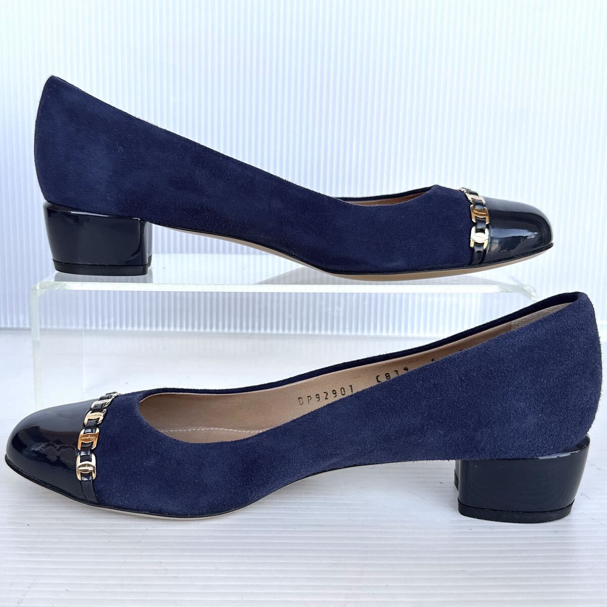 サルヴァトーレフェラガモ バイカラー ヴェラリボン チャンキーヒール ローヒール ラウンドトゥ バレリーナ フラットシューズ ミュール サンダル パンプス Salvatore Ferragamo イタリア製 レーディス 靴 シューズ