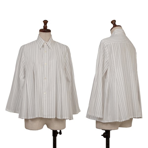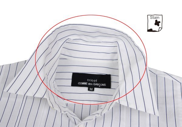 トリココムデギャルソンtricot COMME des GARCONS コットンタックデザインストライプシャツ 白青M |