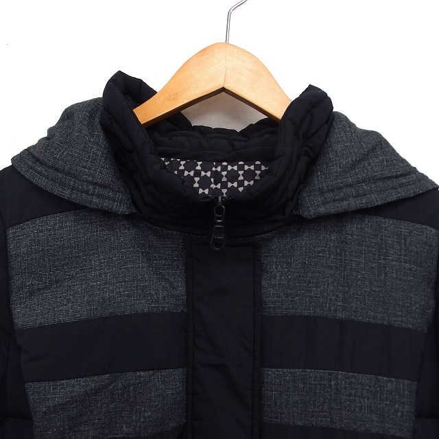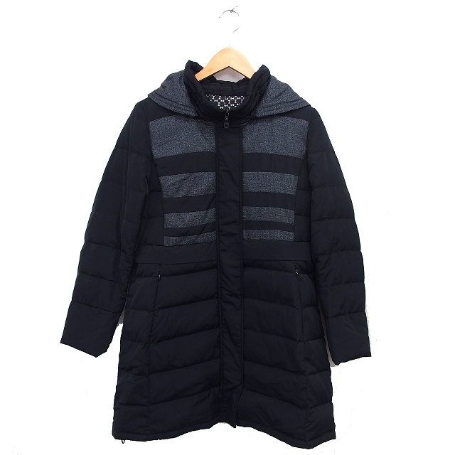 スタイルラヴィー Style Ravie ダウンコート ミドル フード ボーダー ジップアップ 15 黒 ブラック /NT14 レディース