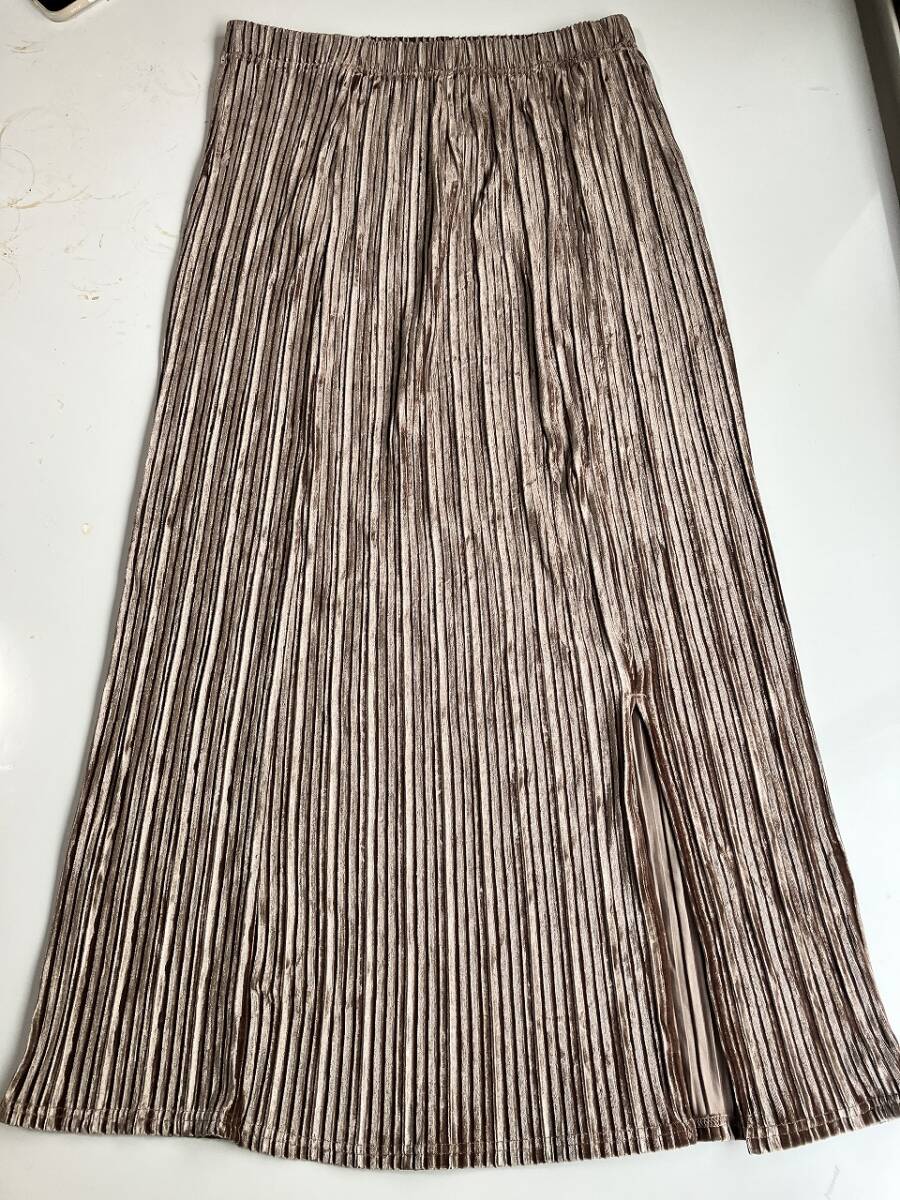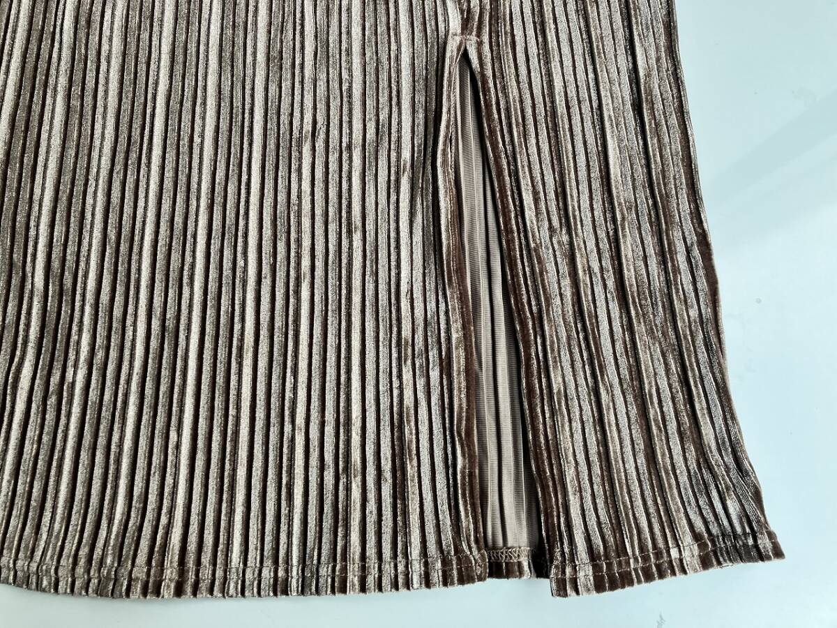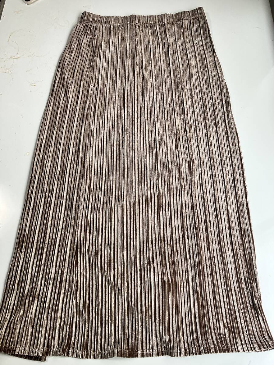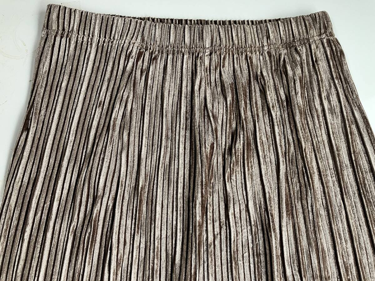 新品■大きいサイズ3L■プリーツ加工ストレッチベロアウエストゴムスカート■ブラウン