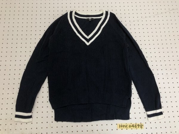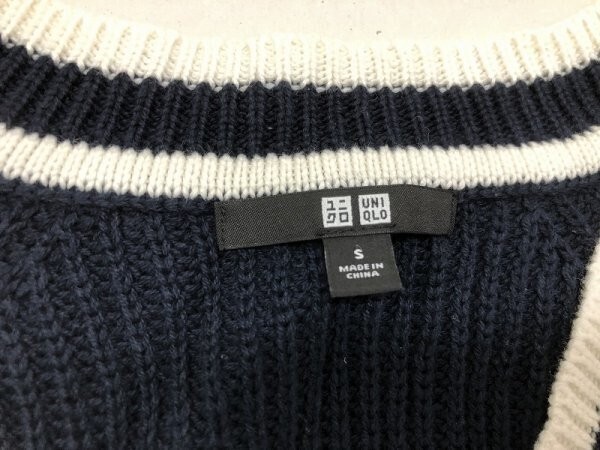 UNIQLO ユニクロ レディース Vネック ライン入 ニットソー S 紺白 です。