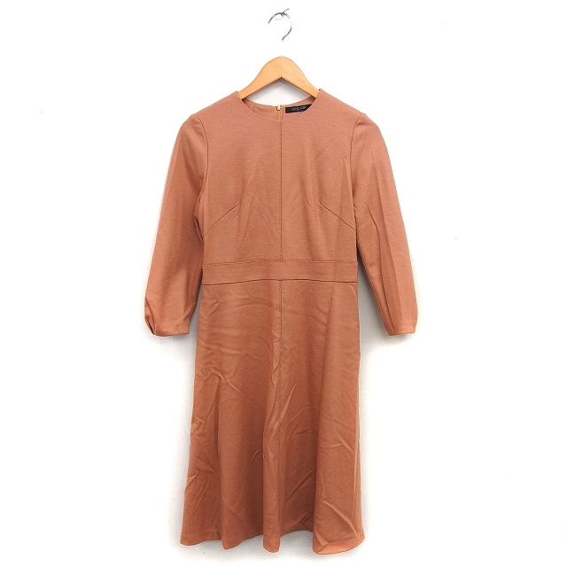 ミッシェルクラン MICHEL KLEIN ウール フレア ワンピース ロング バックジップ 無地 38 キャメル /NT22 レディース