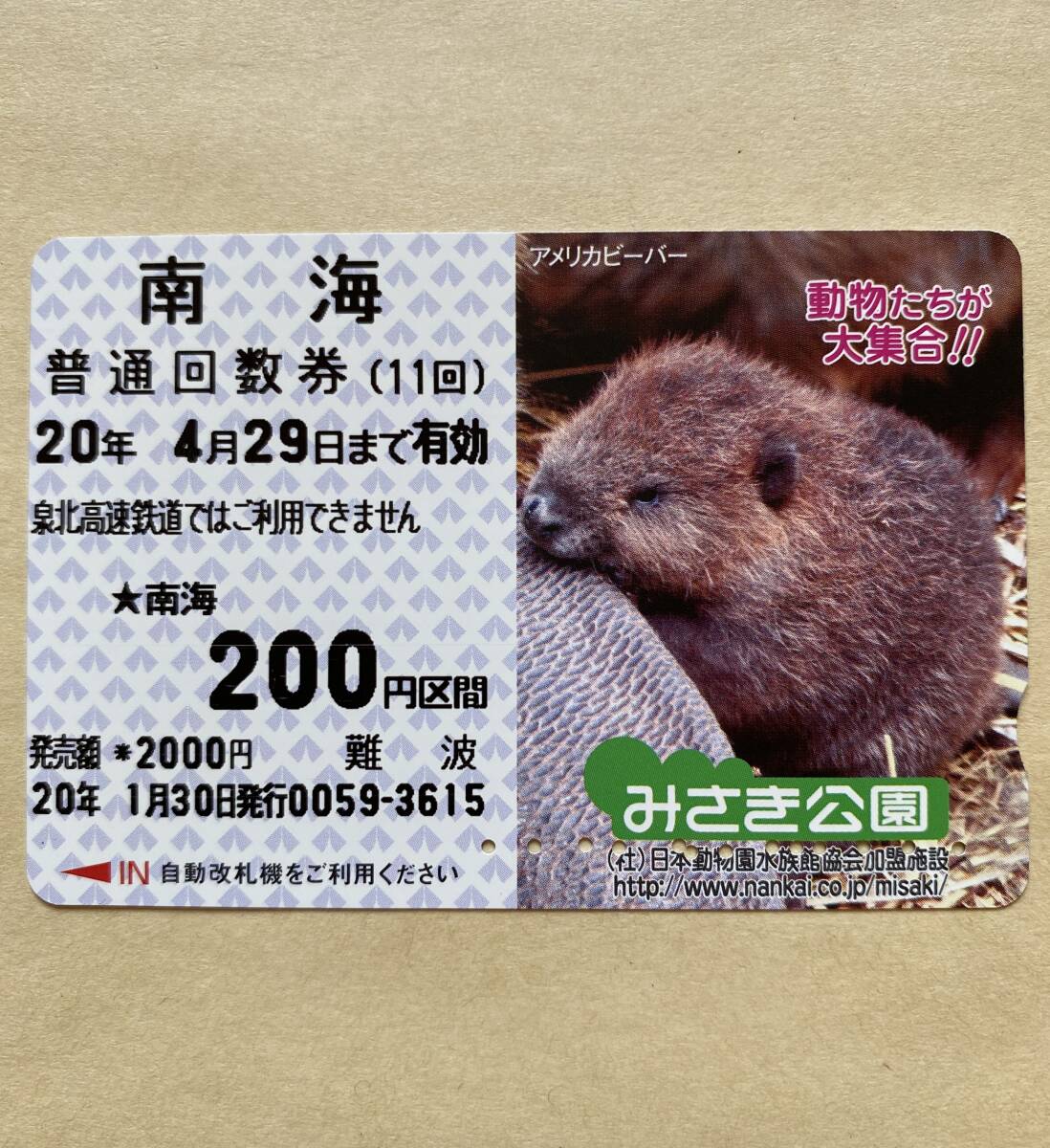 【使用済】 回数券 南海電鉄 アメリカンビーバー みさき公園
