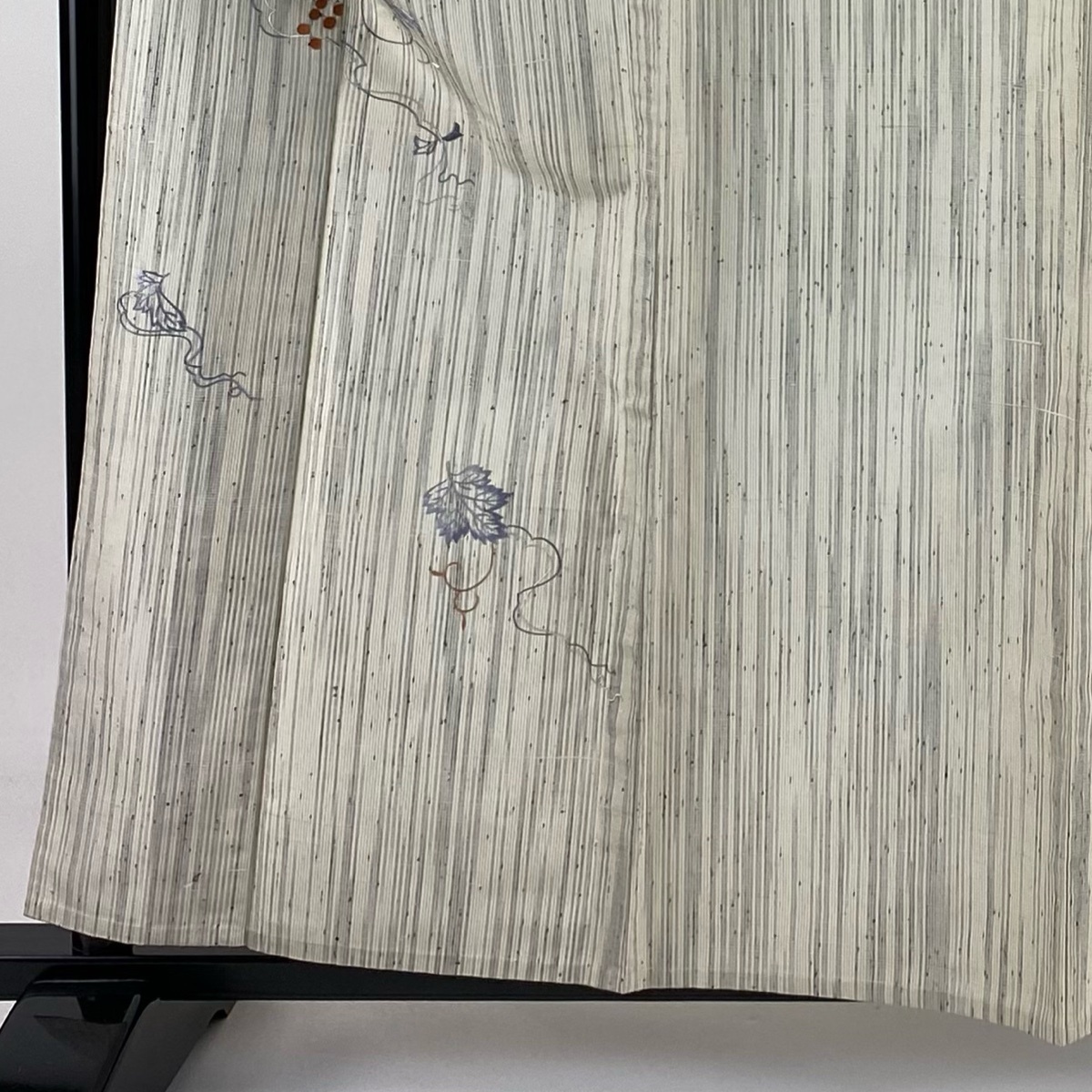 | 付下げ 秀品 紬地 葡萄唐草 刺繍 灰白 単衣 身丈160.5 裄丈65 M 正絹 【中古】 |