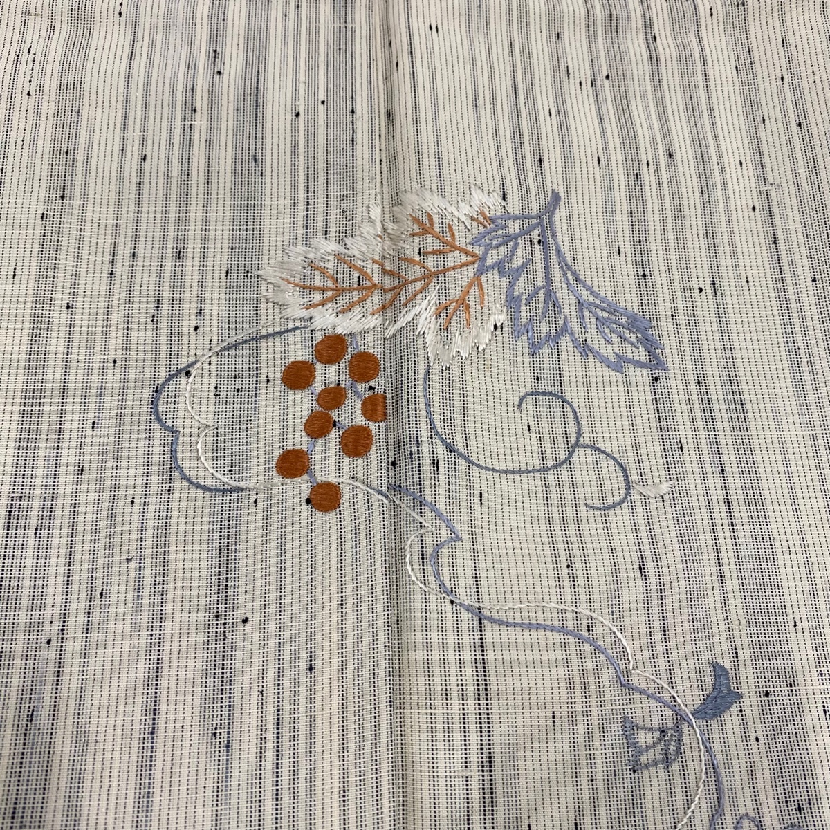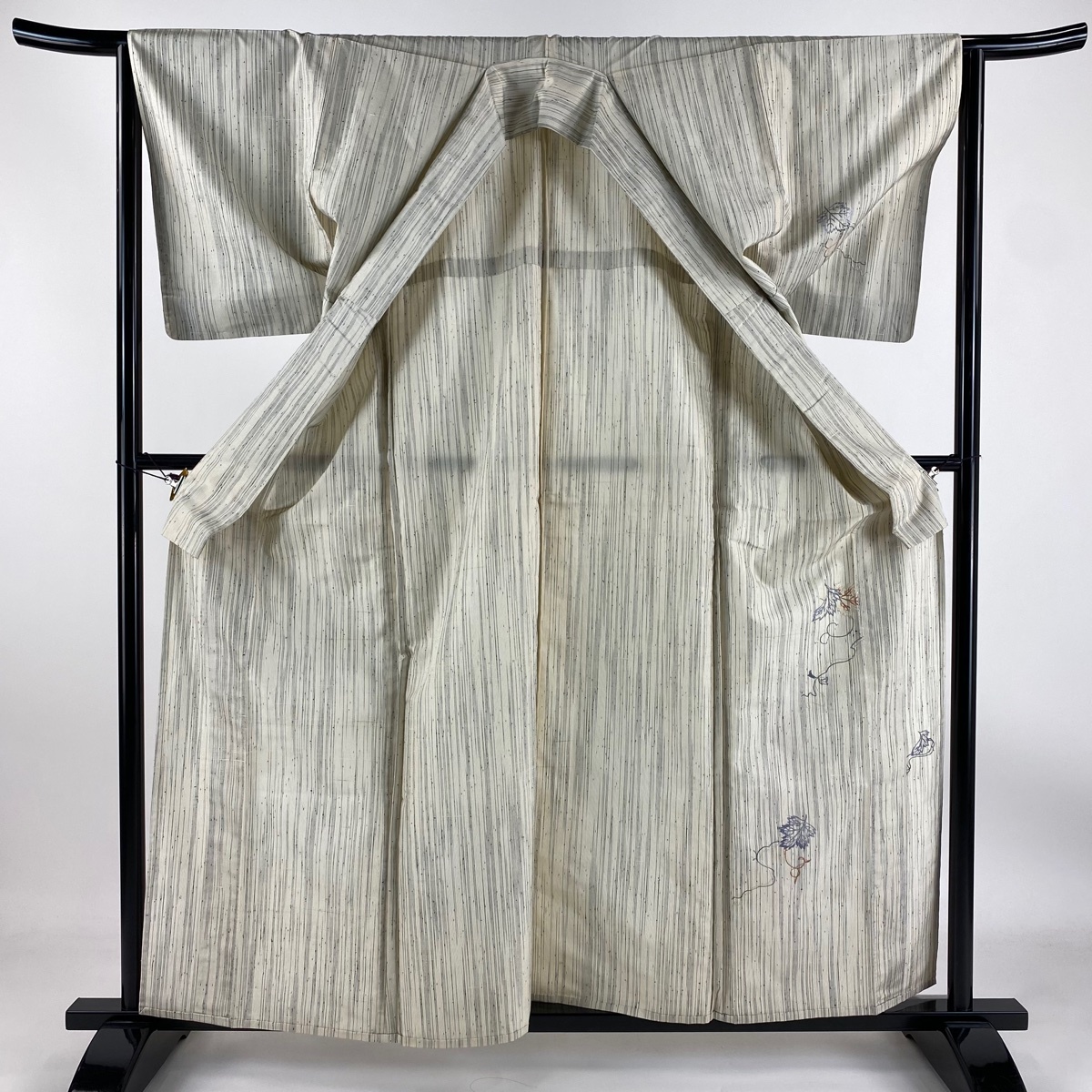 | 付下げ 秀品 紬地 葡萄唐草 刺繍 灰白 単衣 身丈160.5 裄丈65 M 正絹 【中古】 |