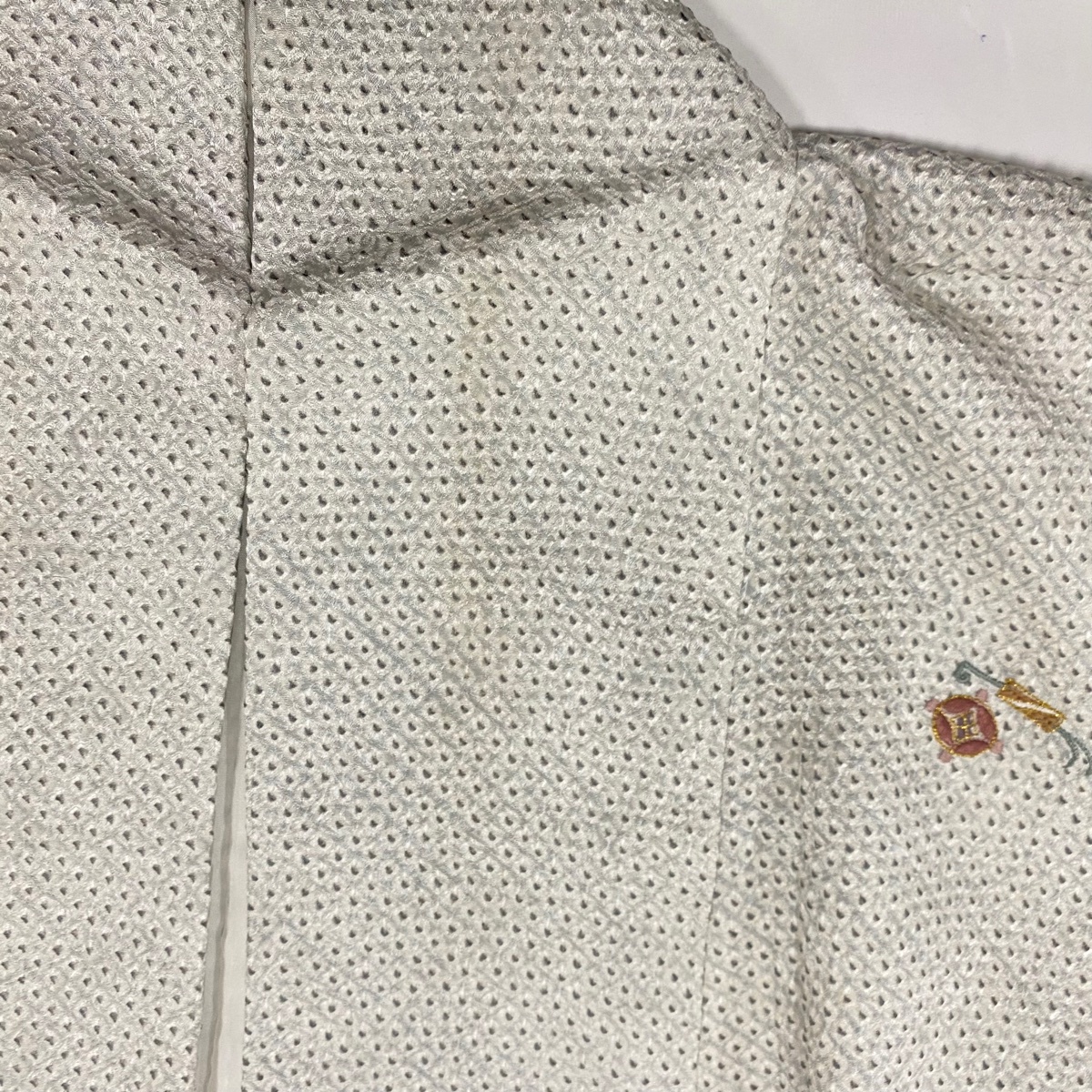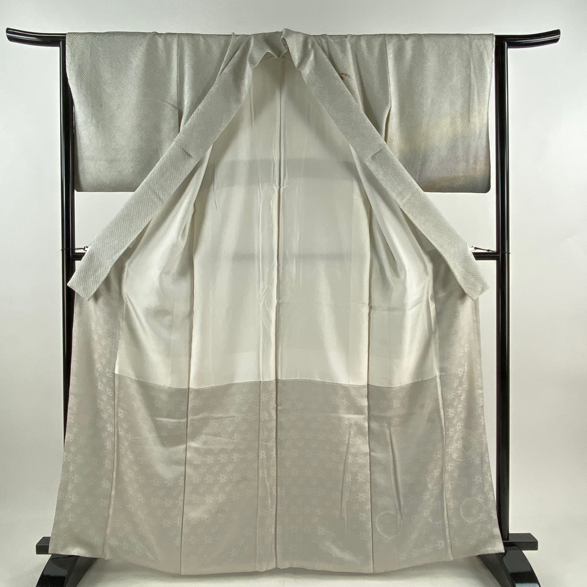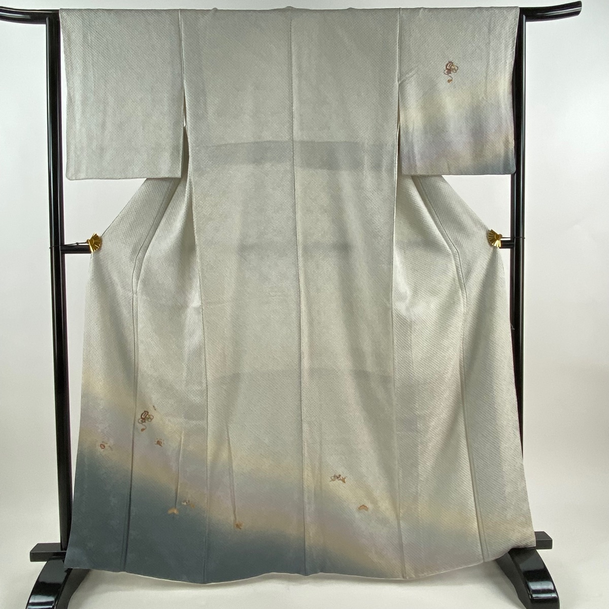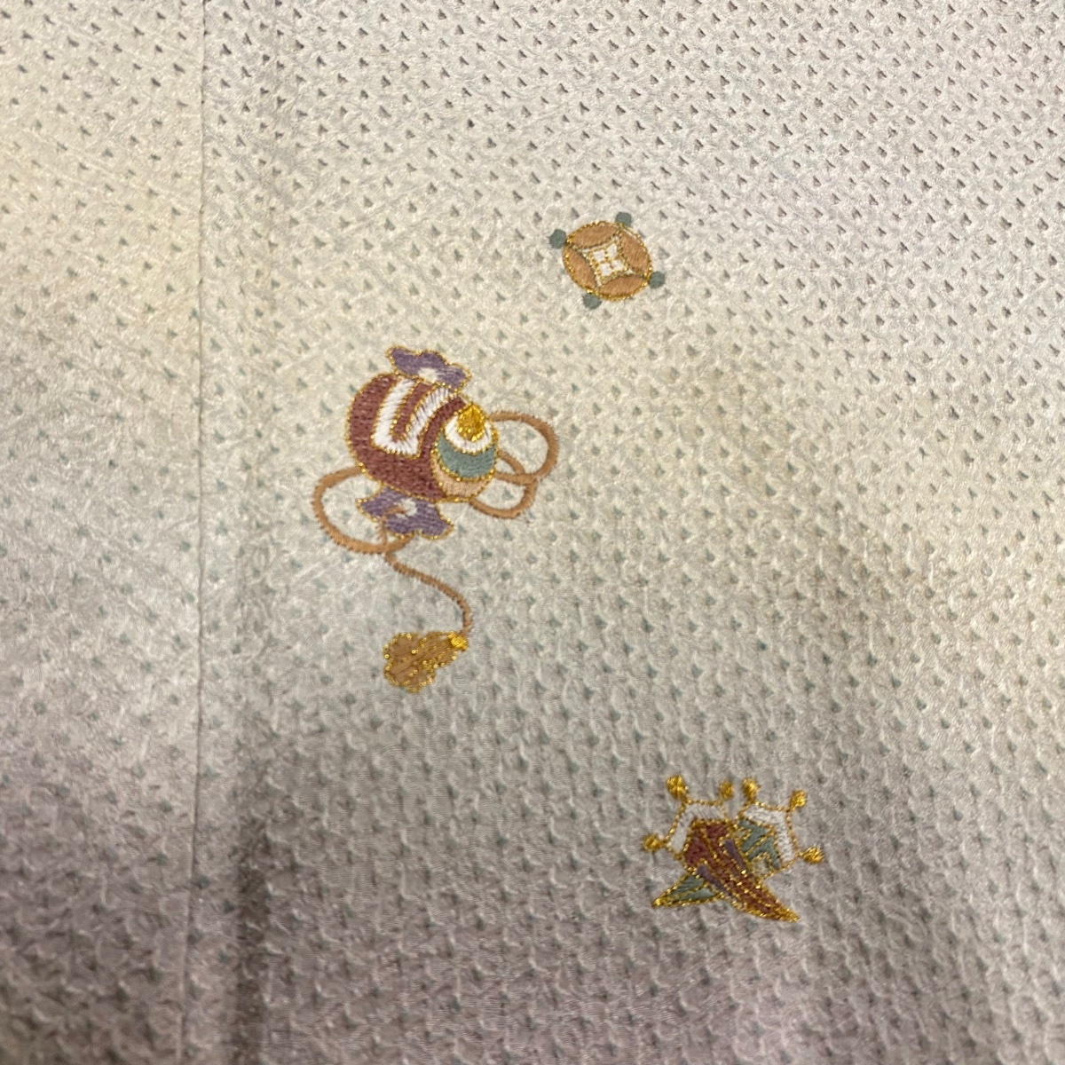 | 付下げ 秀品 宝尽くし 刺繍 絞り 灰白 袷 身丈163.5 裄丈63.5 S 正絹 【中古】 |