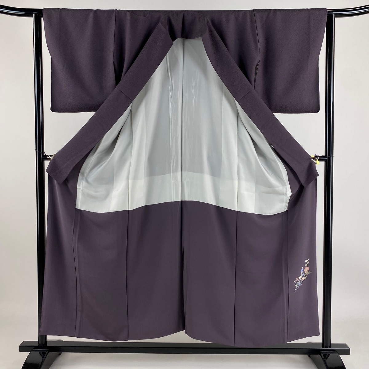 | 色無地 秀品 落款 証紙 地紋 紫 袷 身丈154 裄丈63 S 正絹 【中古】 |