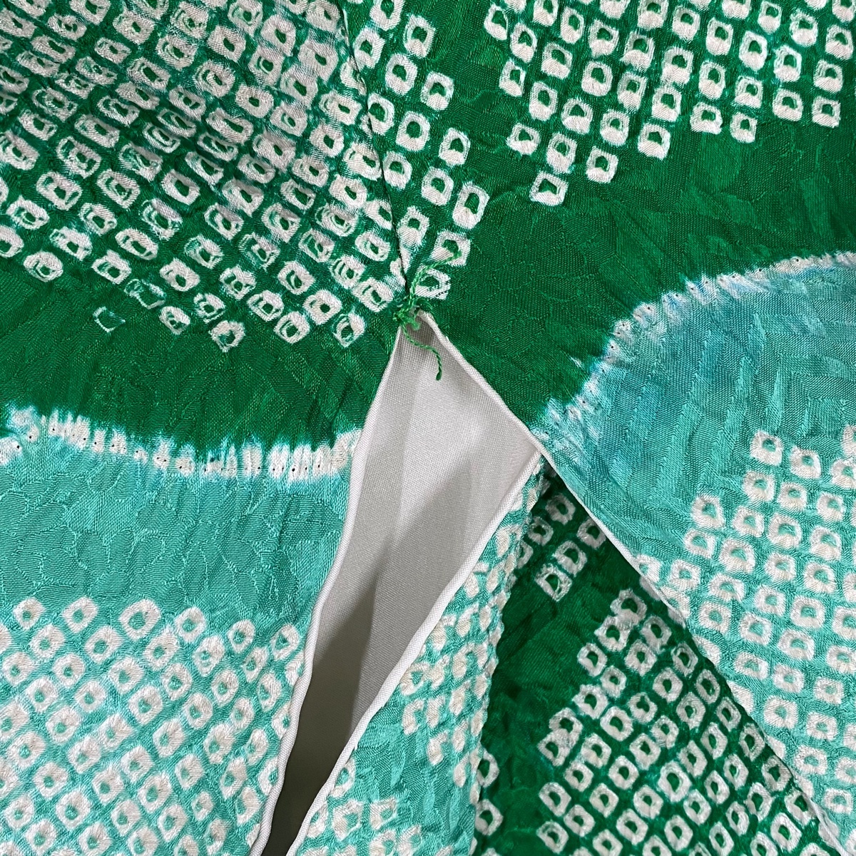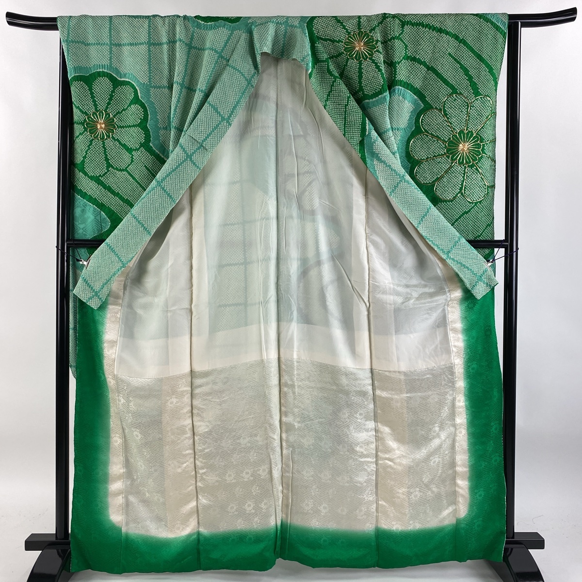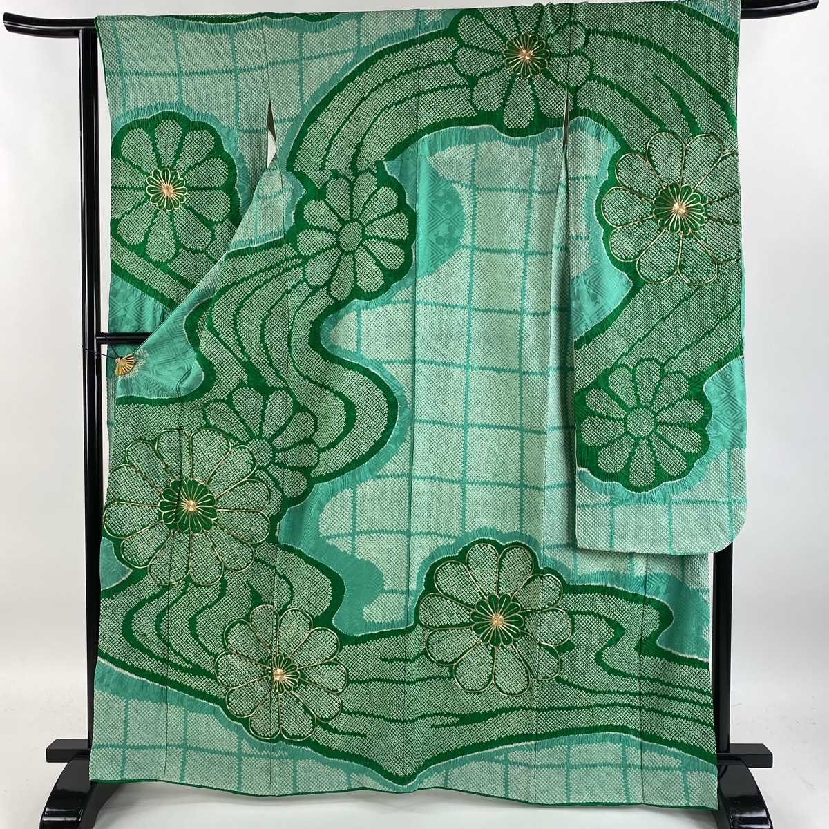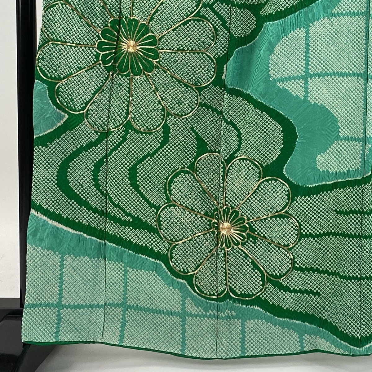 | 振袖 名品 菊 流水 金糸 総絞り 緑 袷 身丈165 裄丈65.5 M 正絹 【中古】 |