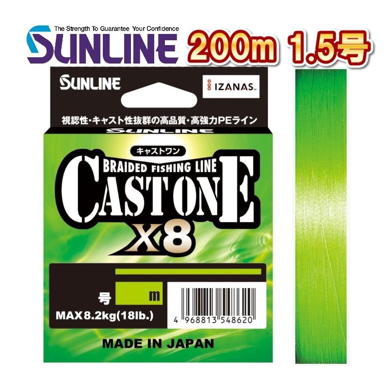 サンライン キャストワン×8 1.5号 32LB 200m 日本製 国産8本組PEライン CAST ONEx8