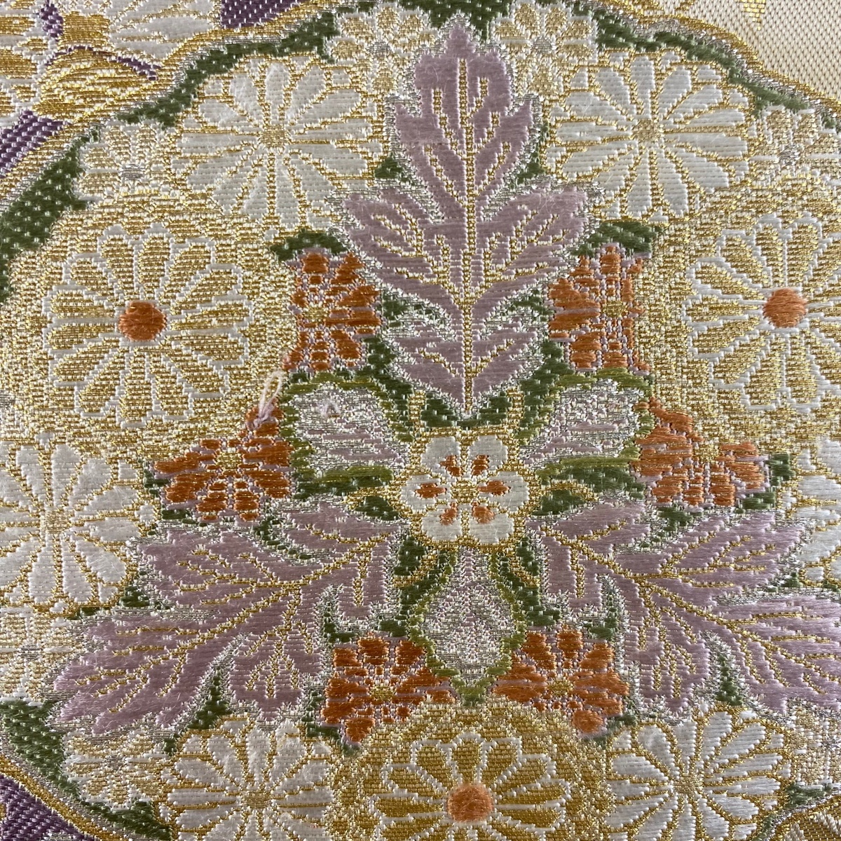 | 袋帯 美品 秀品 高台寺蒔絵 金銀糸 箔 クリーム 六通 正絹 【中古】 |