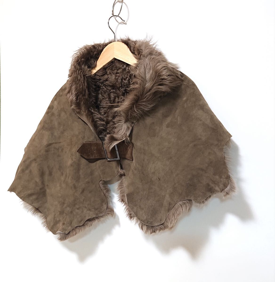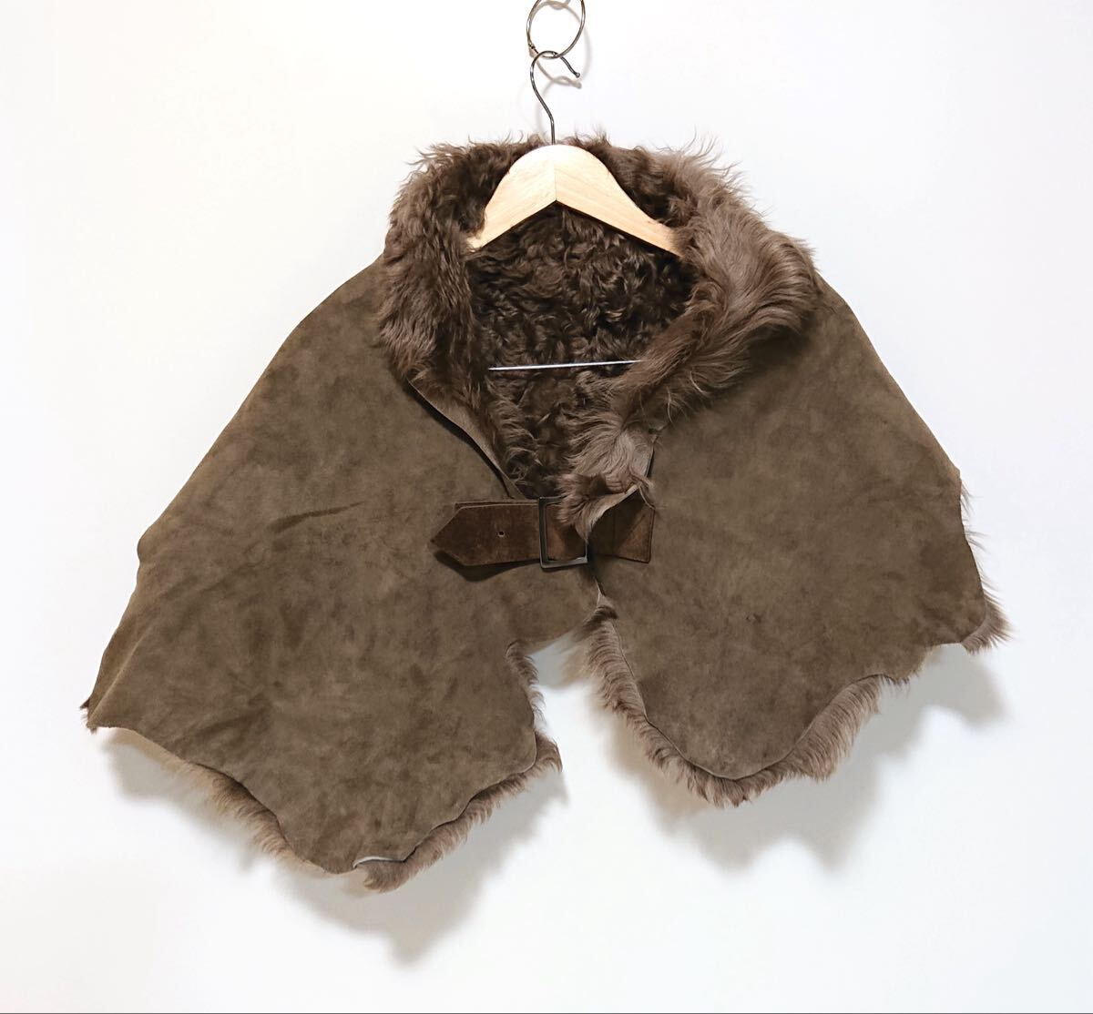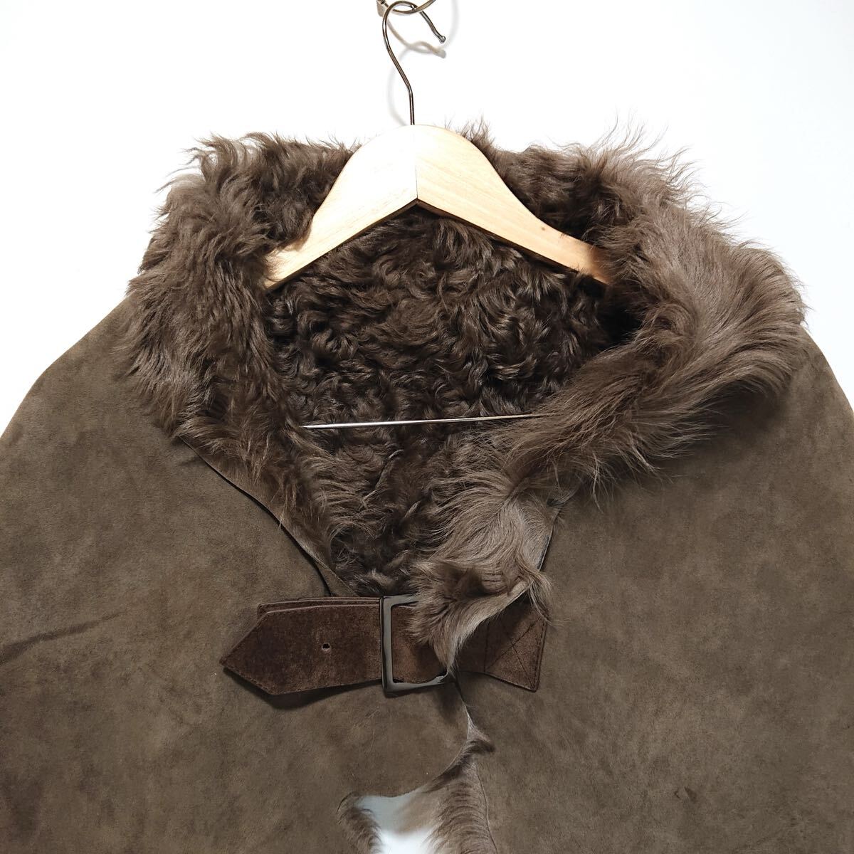 h4226gg 亜由美インターナショナル サイズFREE ポンチョ 毛皮 羊革 ブラウン レディース 秋冬 上着 おしゃれ ベルトデザイン 内側ファー