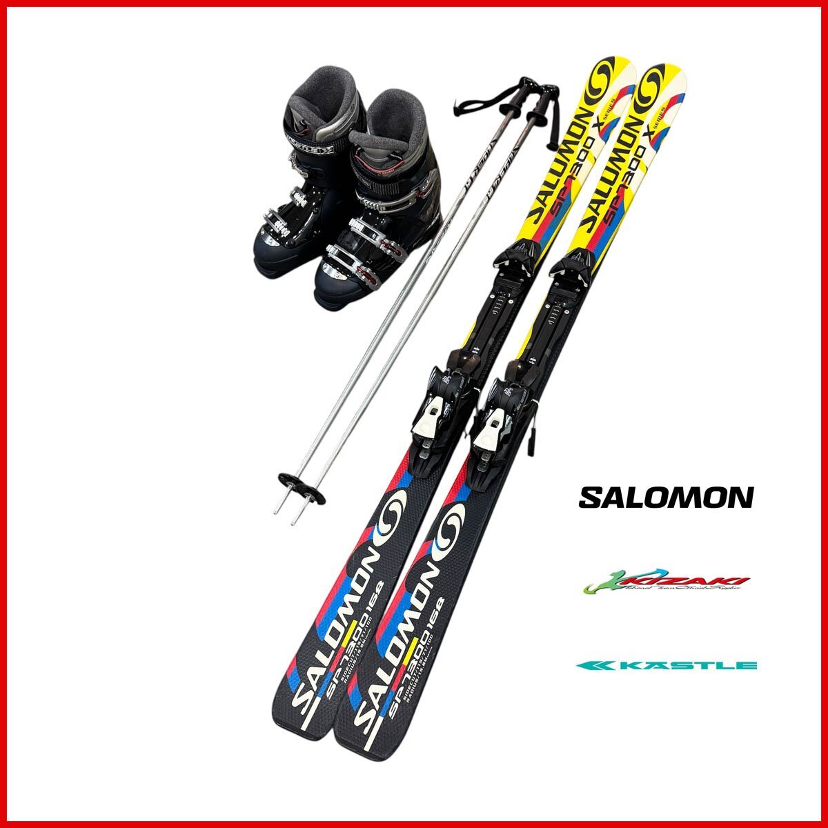 中古●スキー 板/ブーツ/ストックセット●SALOMON/サロモン KIZAKI/キザキ KASTLE/ケスレ カービング 板167cm 3点セット 札幌 903