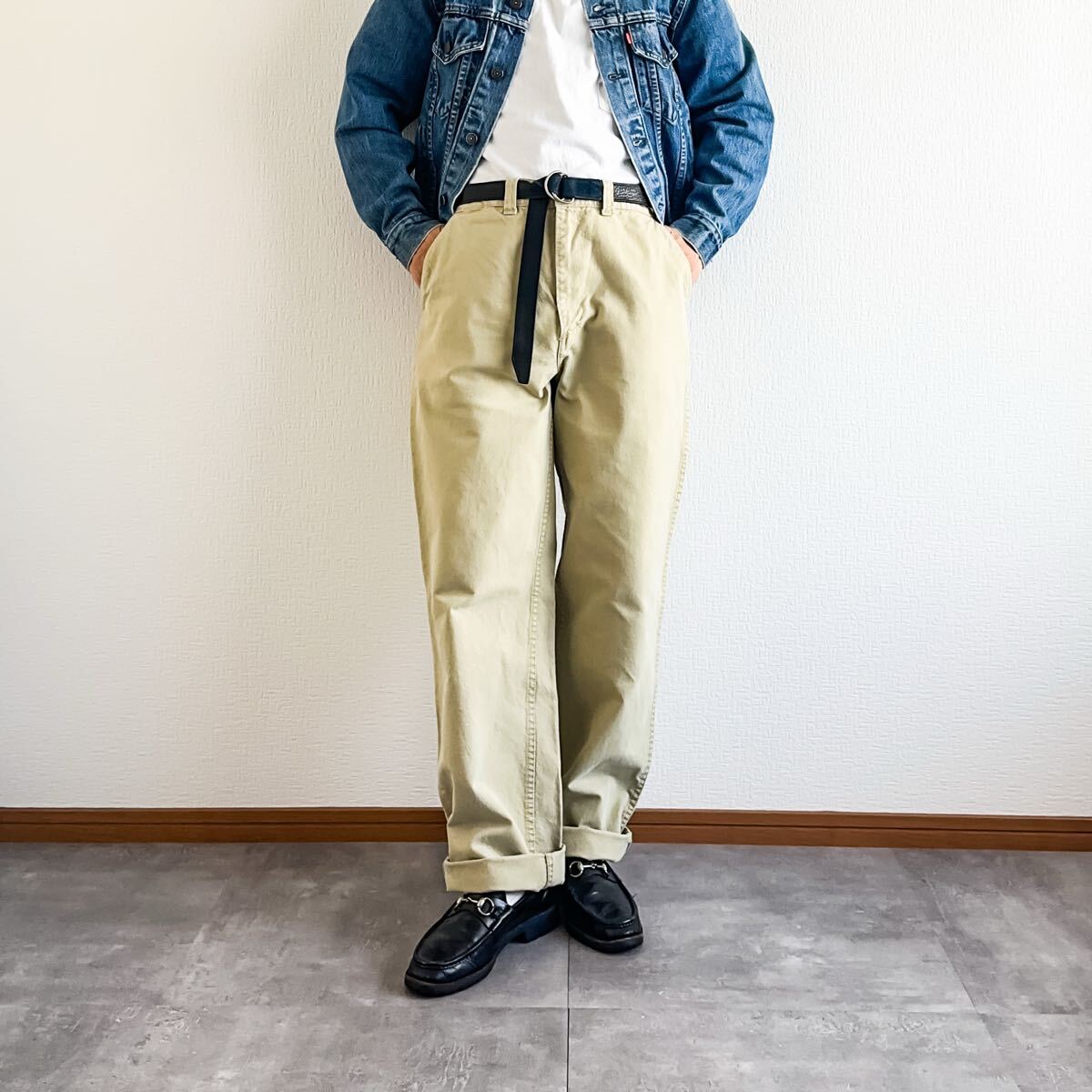少し黄色みのあるベージュカラーに、通年履ける通常よりも少しオンスの低めなダックファブリック。