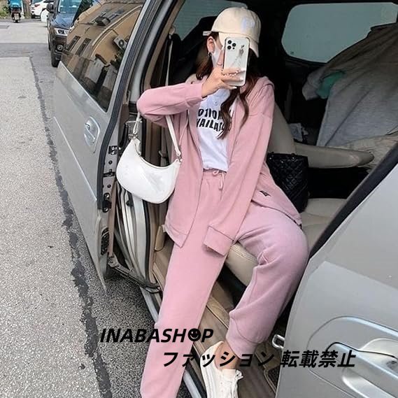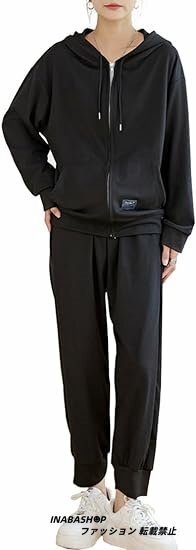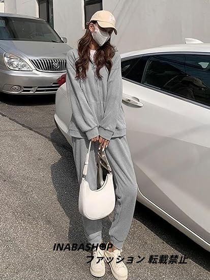 ジップアップ パーカー セットアップ ジャージ レディース 上下セット ファスナー スウェット 運動着 2点セット カジュアル ゆったり