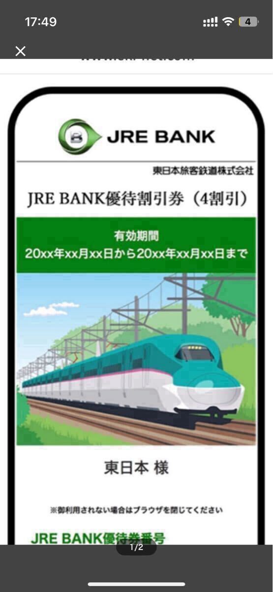 ご利用方法の詳細については、えきねっとウェブサイトの「株主/JRE BANK優待割引券をご利用の場合」をご確認ください。
