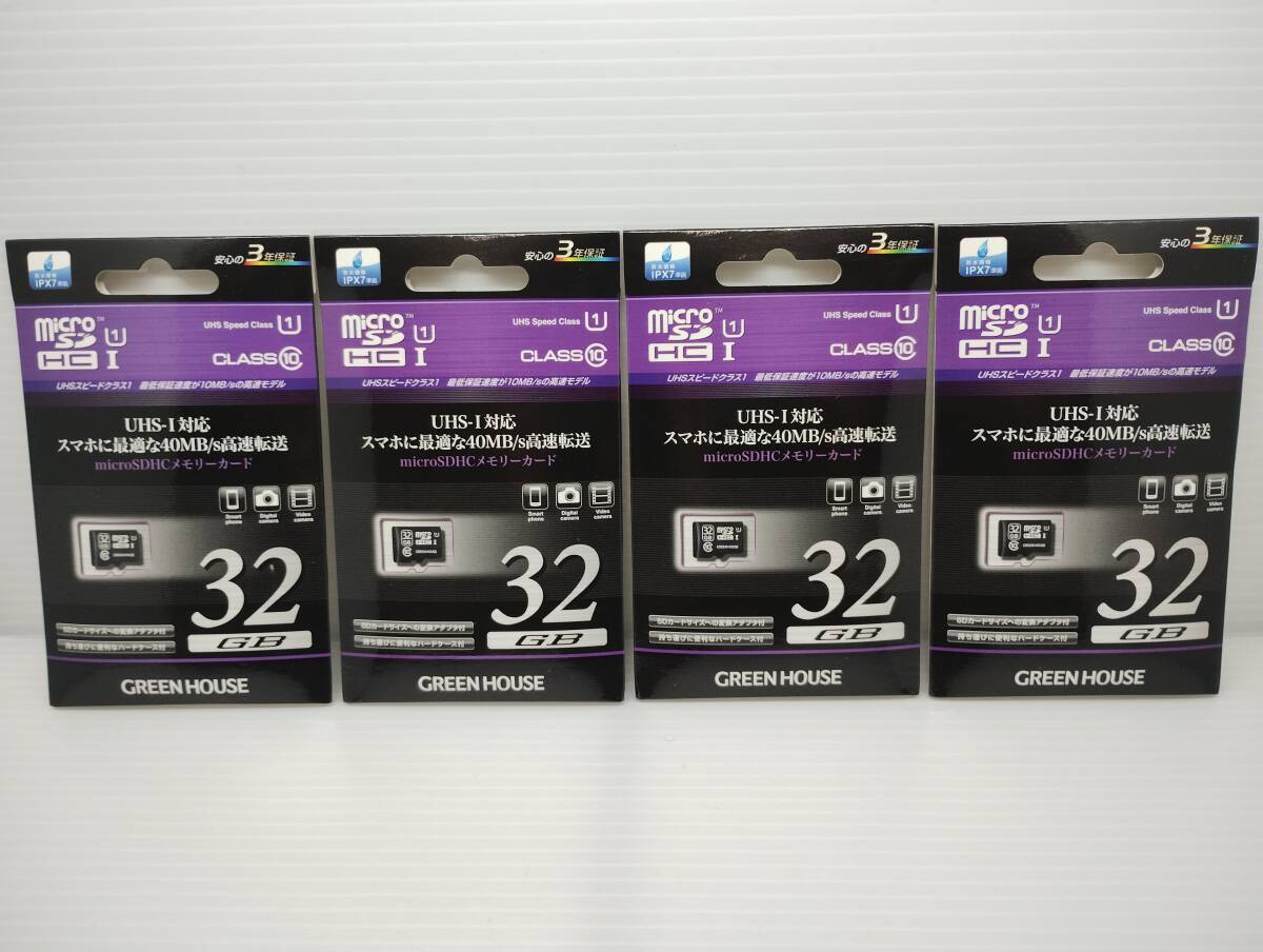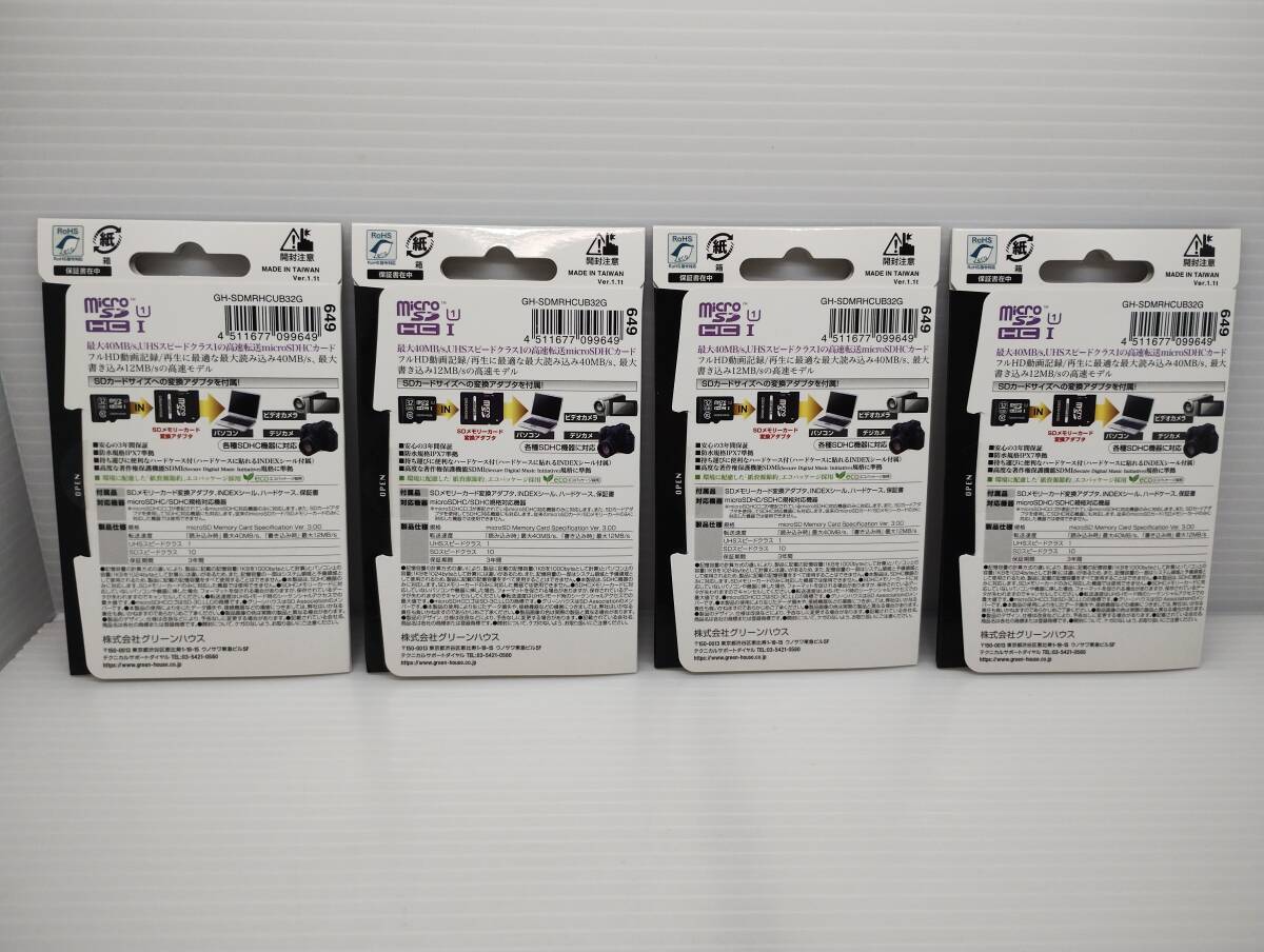 4枚セット 未開封品・未使用品 microSDHCカード 32GB GREEN HOUSE 変換アダプター付き メモリーカード microSDカード