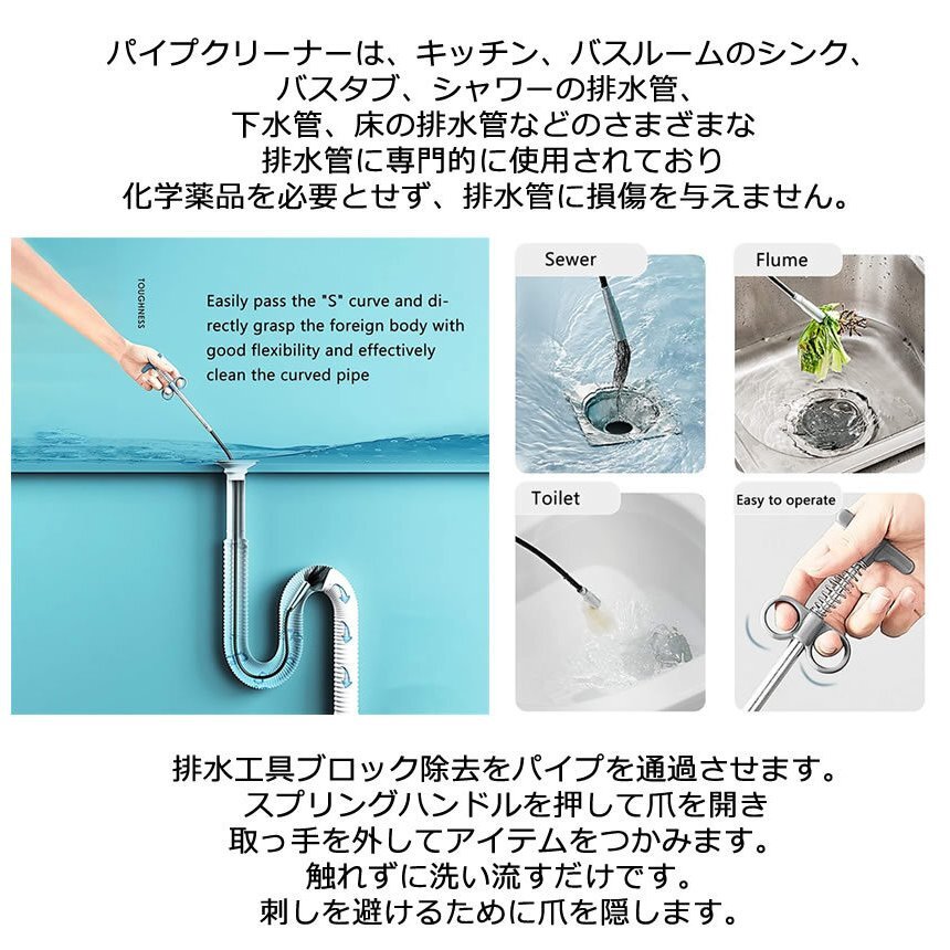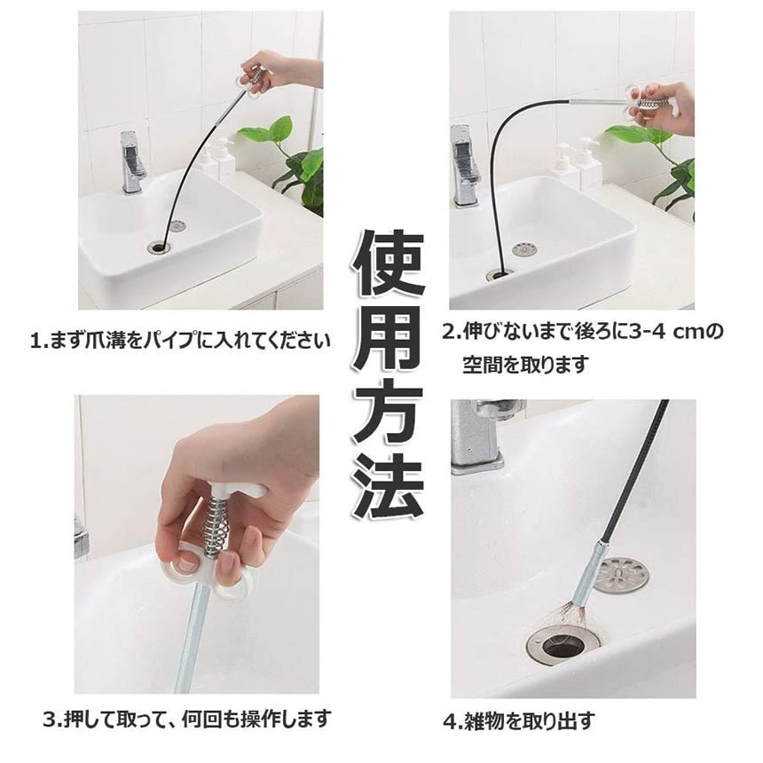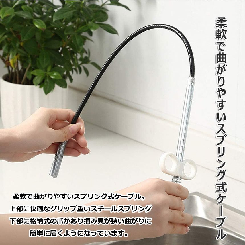配管や排水口の詰まった物を4本の詰めでつかみ取る。