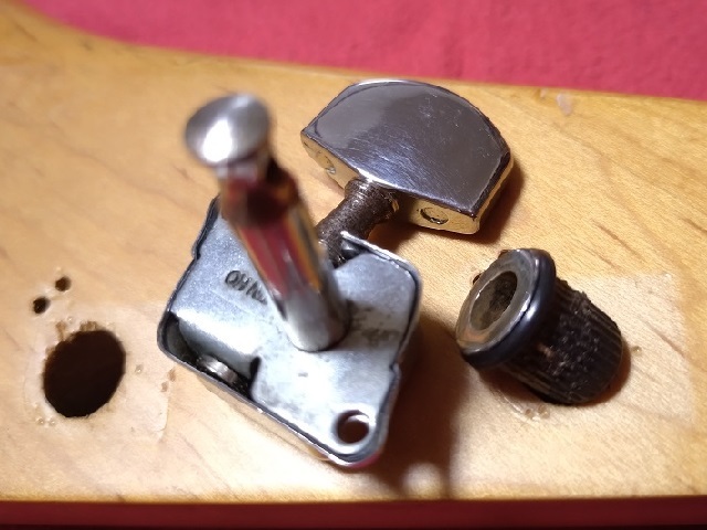 ■商品の到着には時間がかかります! 送料が安い普通郵便で発送するため、到着までは3~6日ほど。気長にお待ちください。 //////////////////////////////////////////////////////////// ■■■ギタリストの定番雑誌「ヤング・ギター」■■■ 超大量、250冊以上を出品中! ★読みたかった1冊、好きなギタリスト特集の1冊、 興味ある記事の1冊が見つかるかも。 こちらからチェック!→ ヤングギター出品中 ★出た検索窓に『ヤング・ギター イングヴェイ』のように スペース+人名などを付けると、記事が掲載された号を 拾い出して一覧で見ることができます。 ■■■エレキギター・ベース用メンテナンスネジ■■■ サドル用イモネジ ピックガード用ネジ ピックアップ用ネジなど出品中! ★愛器のメンテナンスに必要なネジが見つかるかも。 こちらからチェック!→ ネジ出品中 //////////////////////////////////////////////////////////// 落札個数は1個のみです。 【届く現物について/以下をご了承の上でどうぞ】 ●3枚目参考写真のように指で回す軸にサビがあります。 ●ブッシュの銀メッキ部にはキズや剥げあり、ヘッドに打ち込むギザ部には接着剤がついています ●このペグがついていたギターはTakamine製らしいですが、確かではありません 写真は落札後に届く品と同形のものです。現物はこれよりキズなどあると思ってください。 そのへんご了承の上お願いします。コンディションに厳しい方はおやめください。 ■落札/購入をお考えの方へ ※複数落札/複数購入の場合「個別取引」「まとめて取引」等に関わらず当方判断で梱包数を最低限にすることがあります。 ※荷物へのオークションID・出品者IDの記入はお断りします。特に代理落札業者の方は十分ご留意ください。