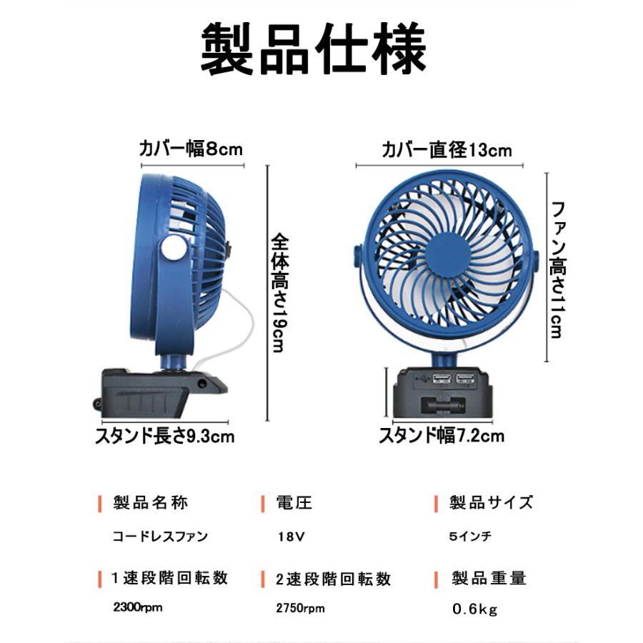 (A) マキタ makita 充電式 互換 5インチ 扇風機 卓上 ファン 静音 小型 キャンプ USB コードレス 電動 18V 14.4V バッテリー 対応 ブルー