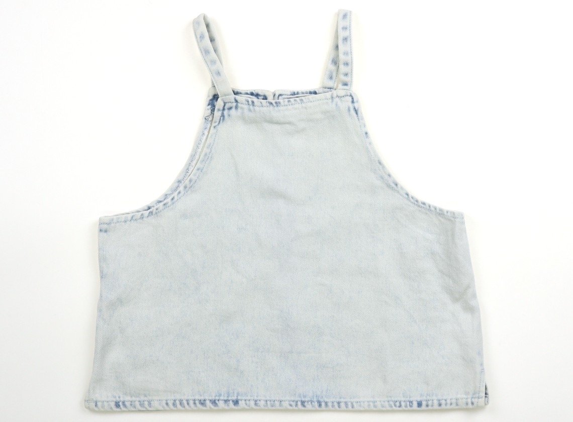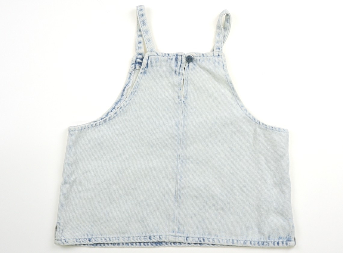 実際のサイズ表記は13-14(164)です。着丈約32cm・身幅約40cmのデニム調素材です。若干胸部分に黒ずみ汚れがありますがTシャツ等への重ね着ファッションにまだお使いいただけそうです。