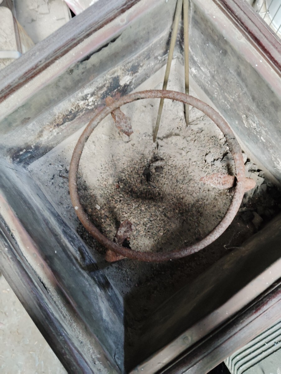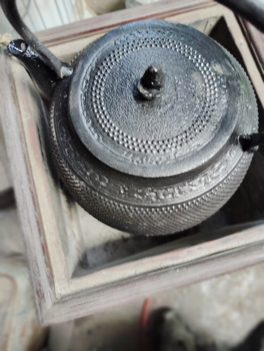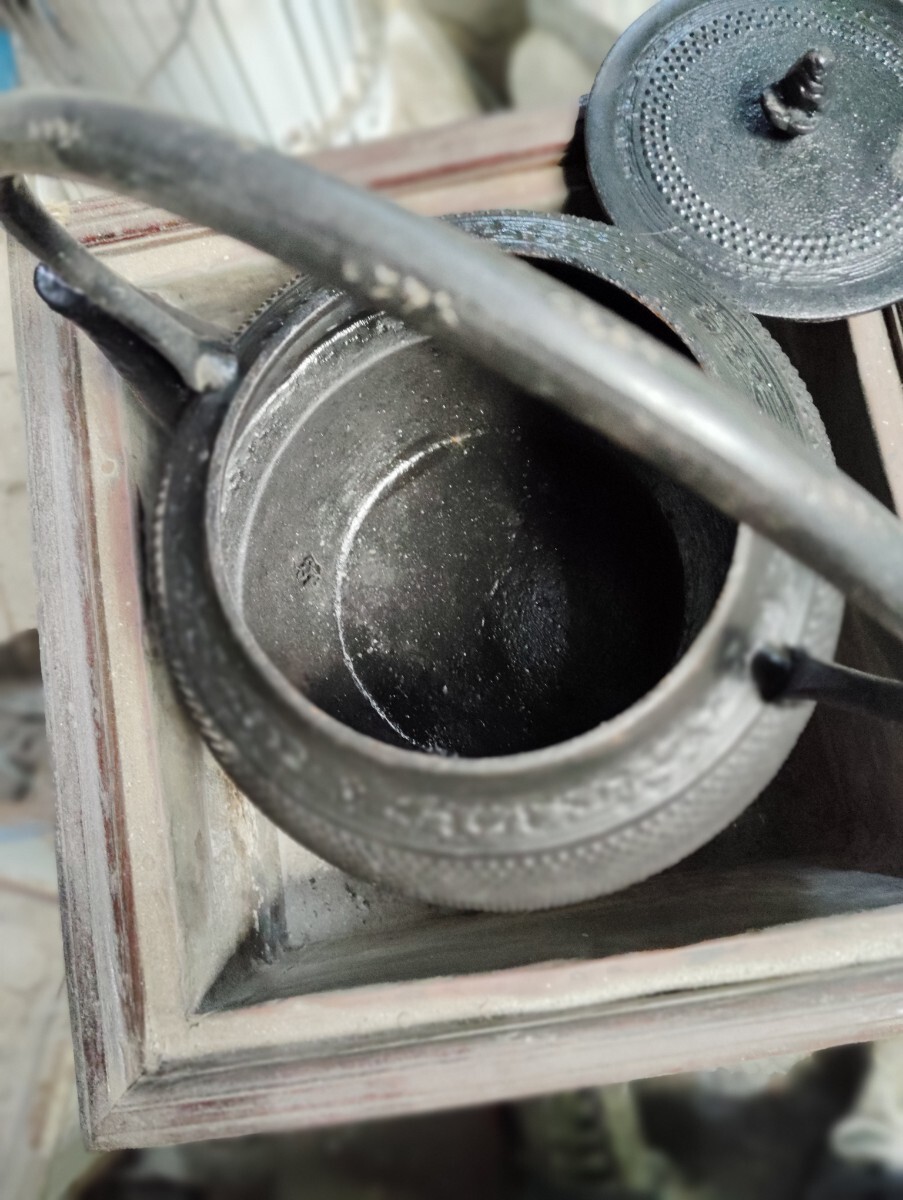 時代物の手あぶり 鉄瓶 火鉢灰付きですインテリアなのにいかがですかヤマト宅急便の着払いになります。