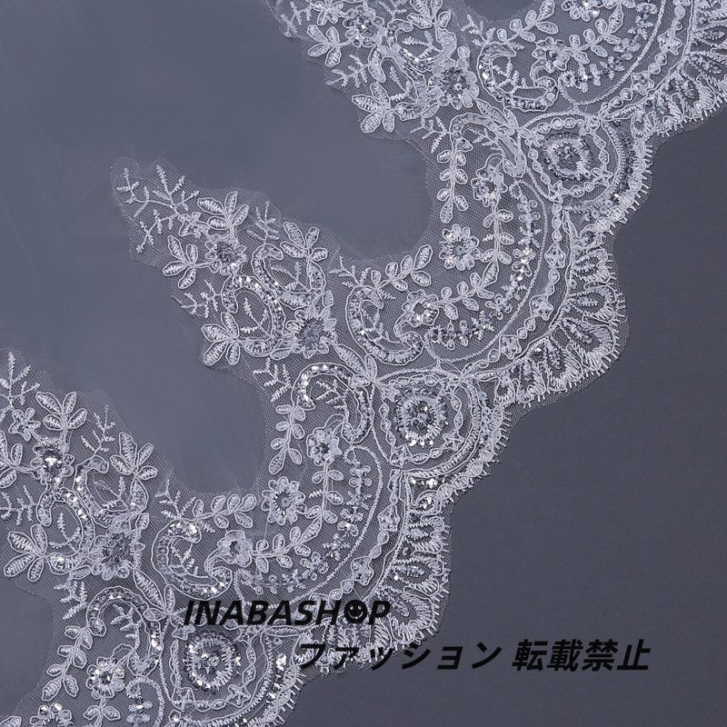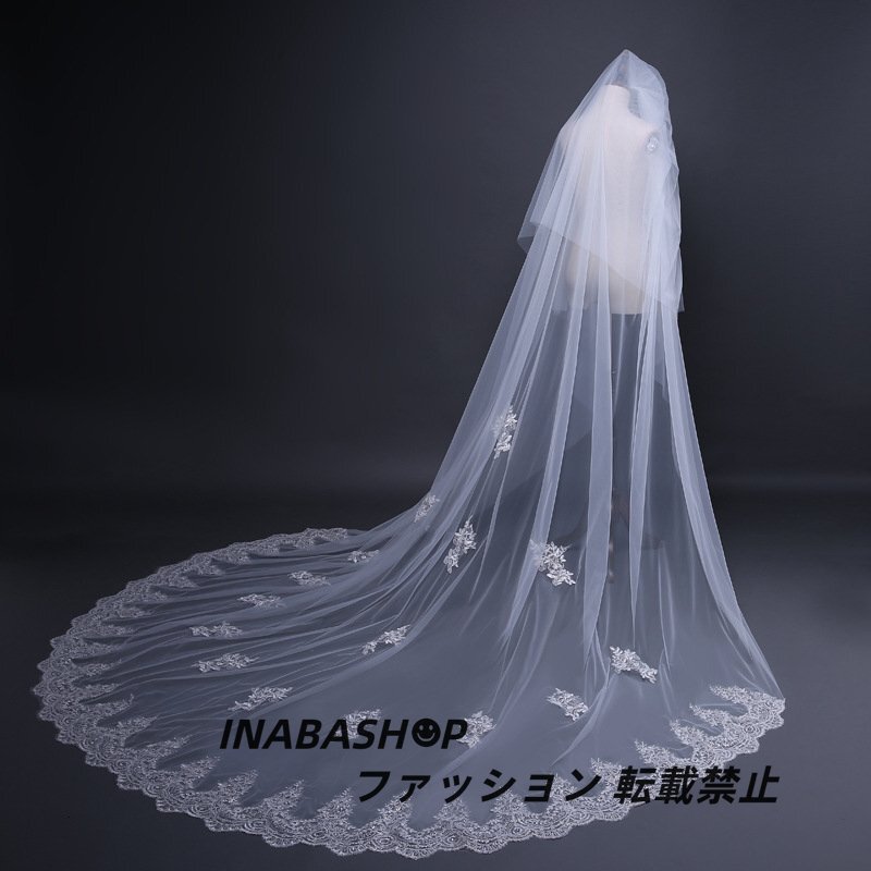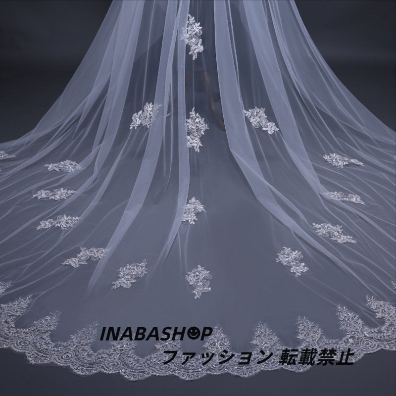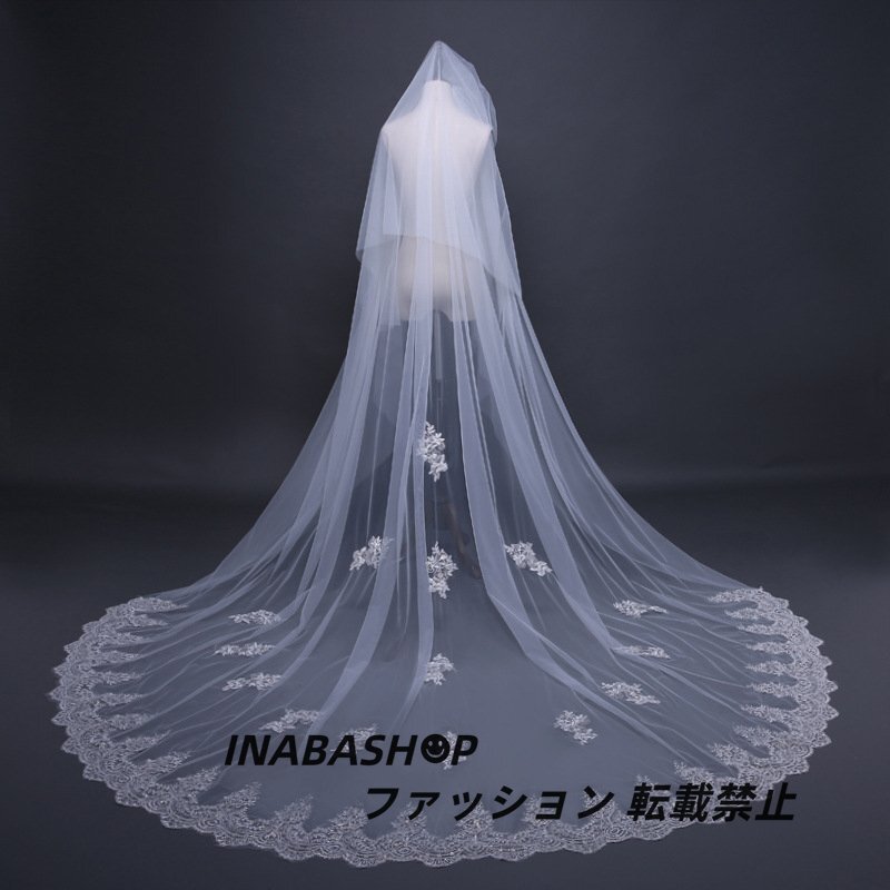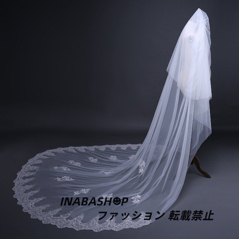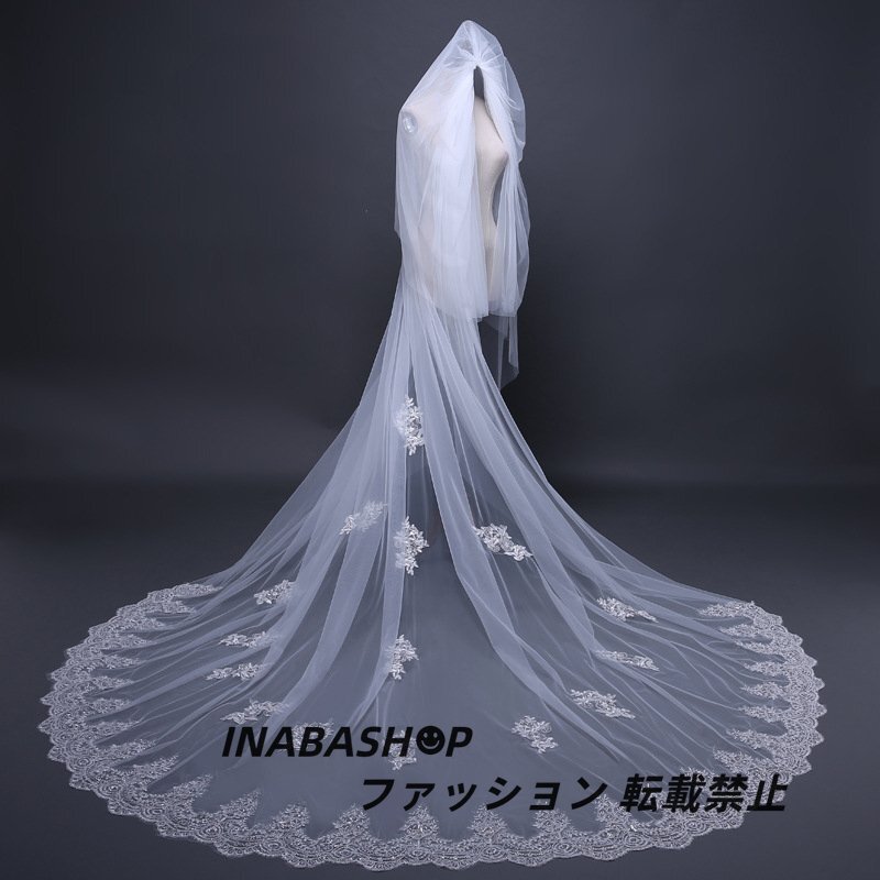 ロング ウェディングベール ウエディングベール コーム付き レース・刺繍 2層タイプ ベールUP儀式もOK【長さ0.8m+3m×幅3m】