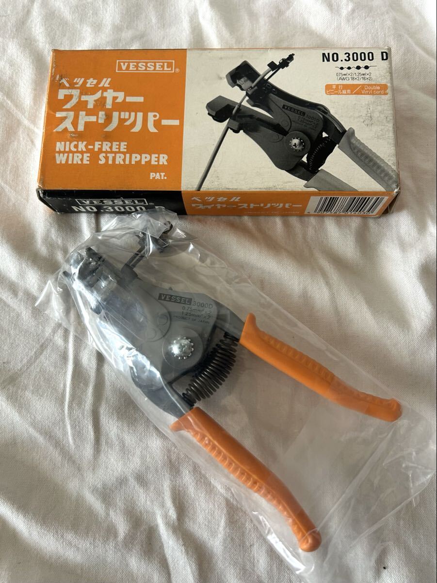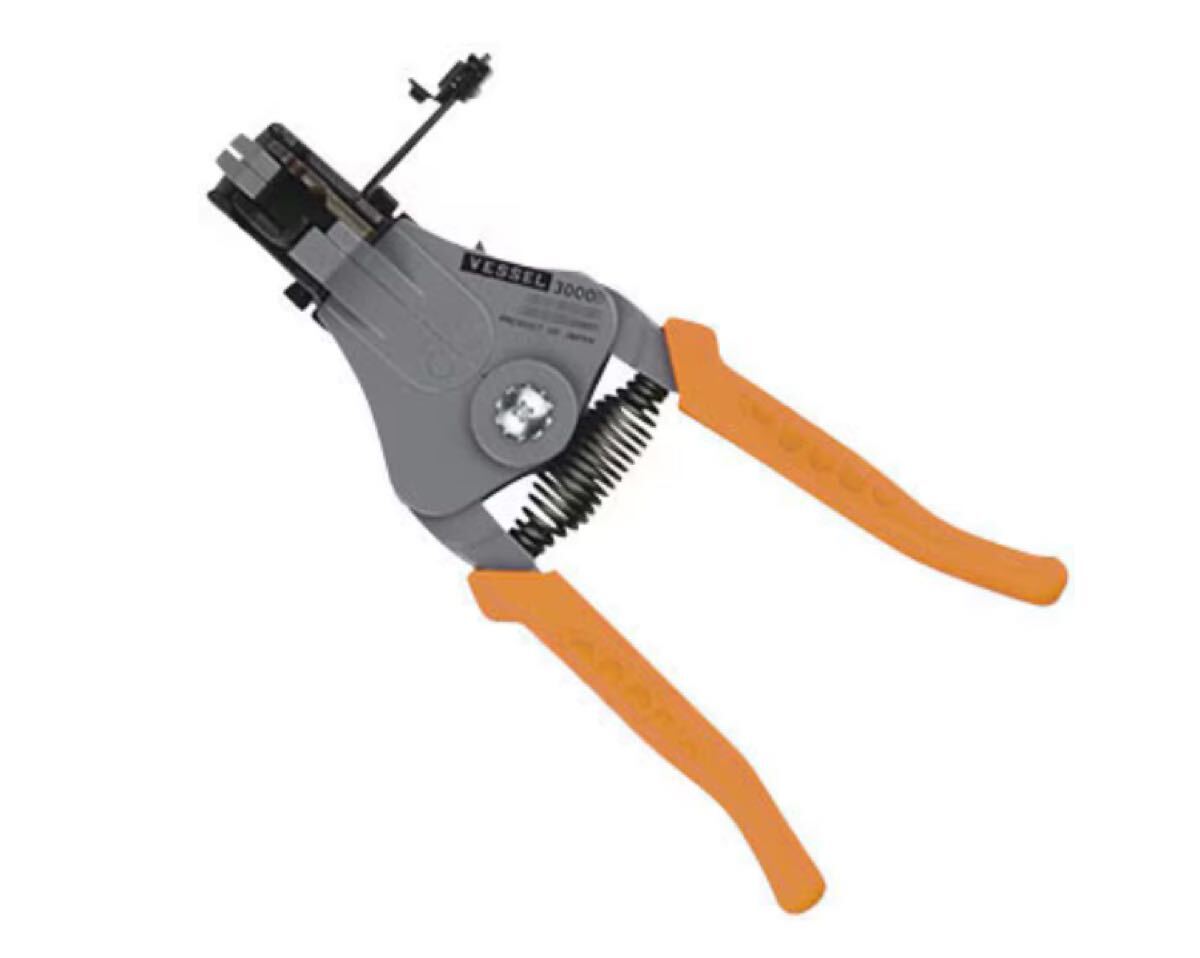 特長 ビニール線のビニール被覆を剥取る場合に用いる工具。線を傷めず被覆を剥取る事が出来、便利で能率的。