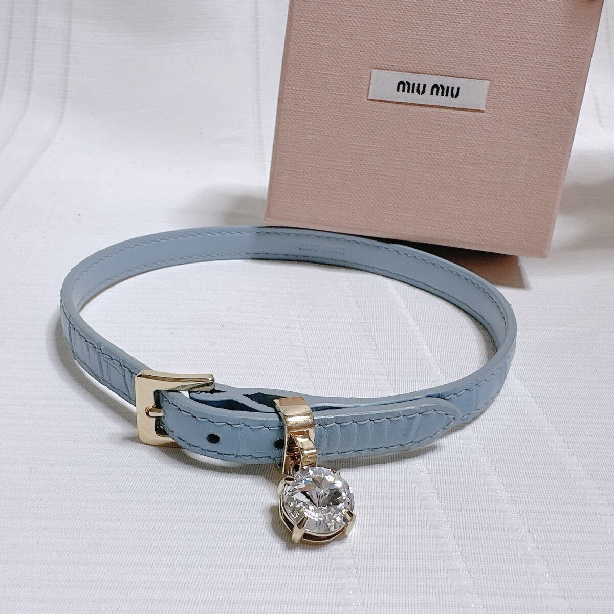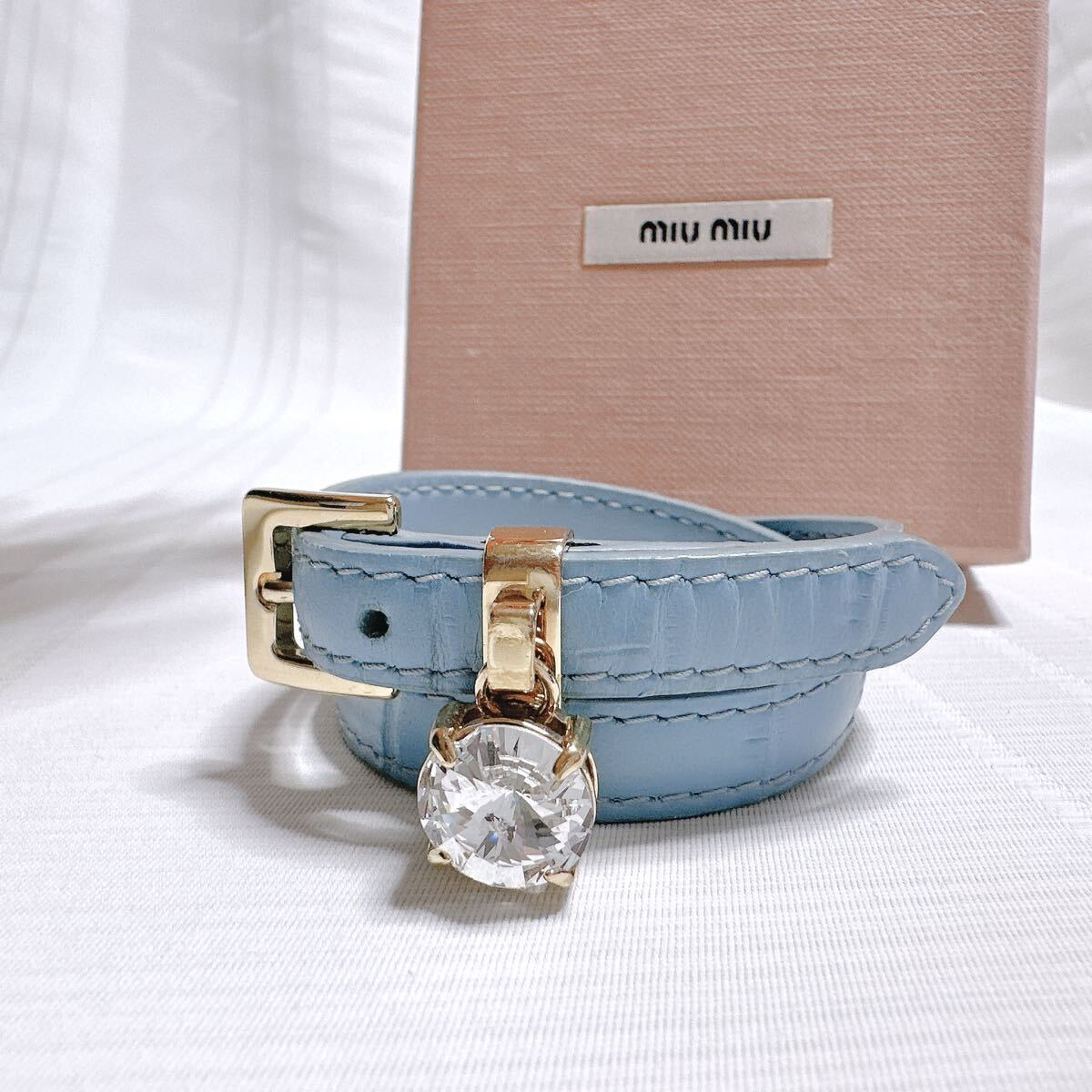 MiuMiu 2WAY ミュウミュウ クリスタル ビジュー ラインストーン レザー ブレスレット バングル チョーカー ネックレス アクセサリー 希少モデル イタリア製