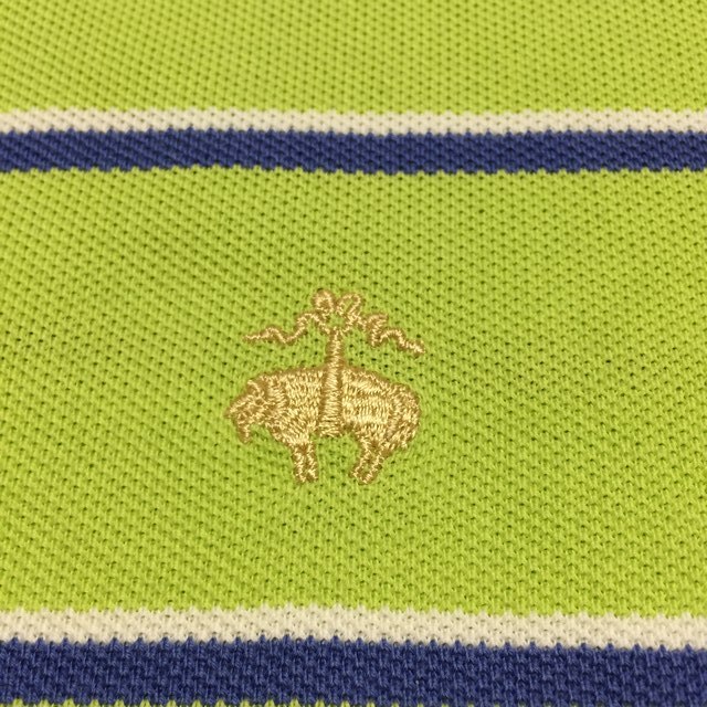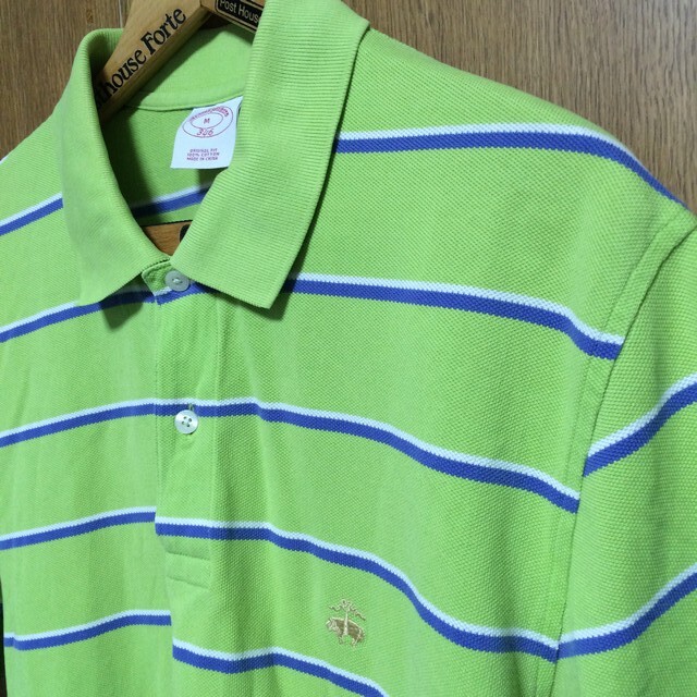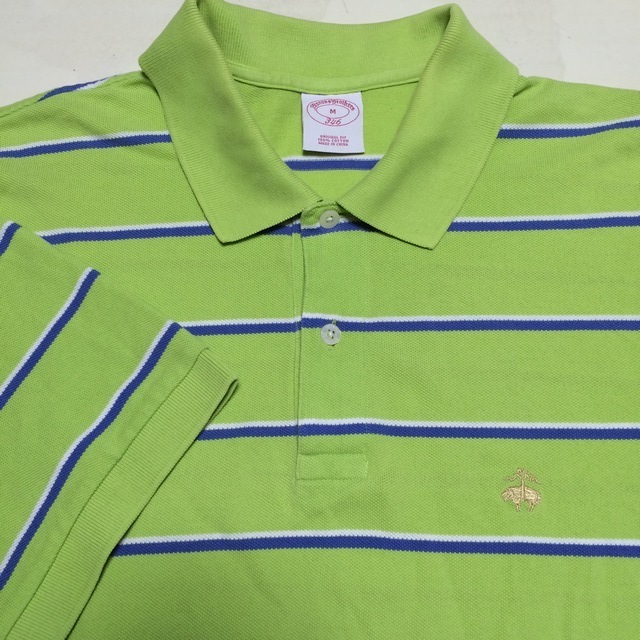 商品説明・状態 | 1.Brooks Brothers の半袖ポロシャツで、黄緑色の無地にブルーと白のボーダー柄です。 2.襟の汚れ、スレ、目立つ退色はありません。 3.実寸法を確認後、入札願います。 | |